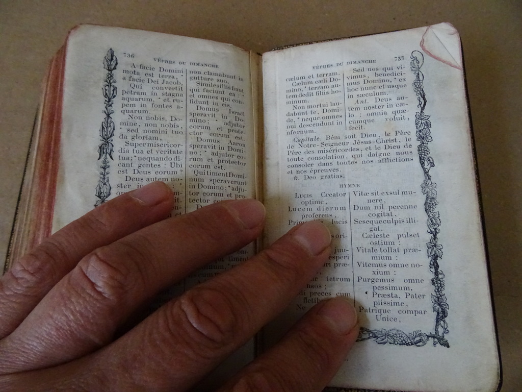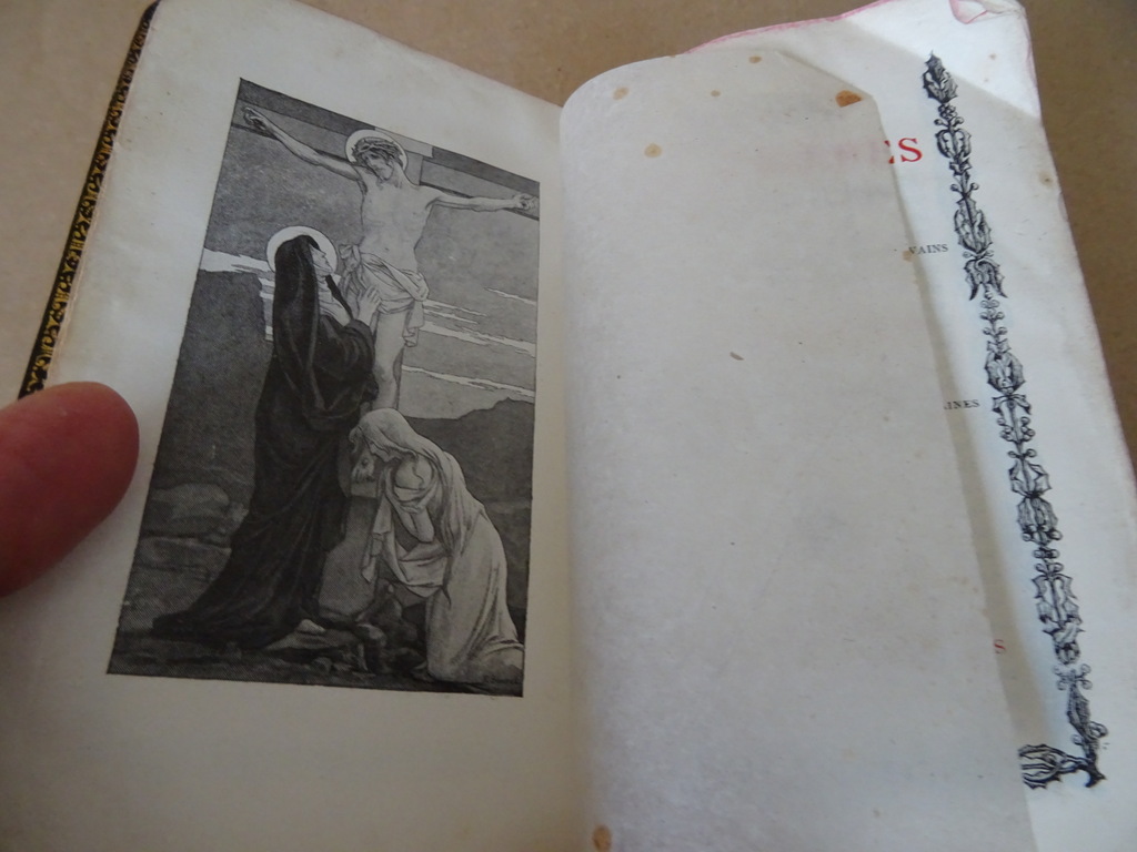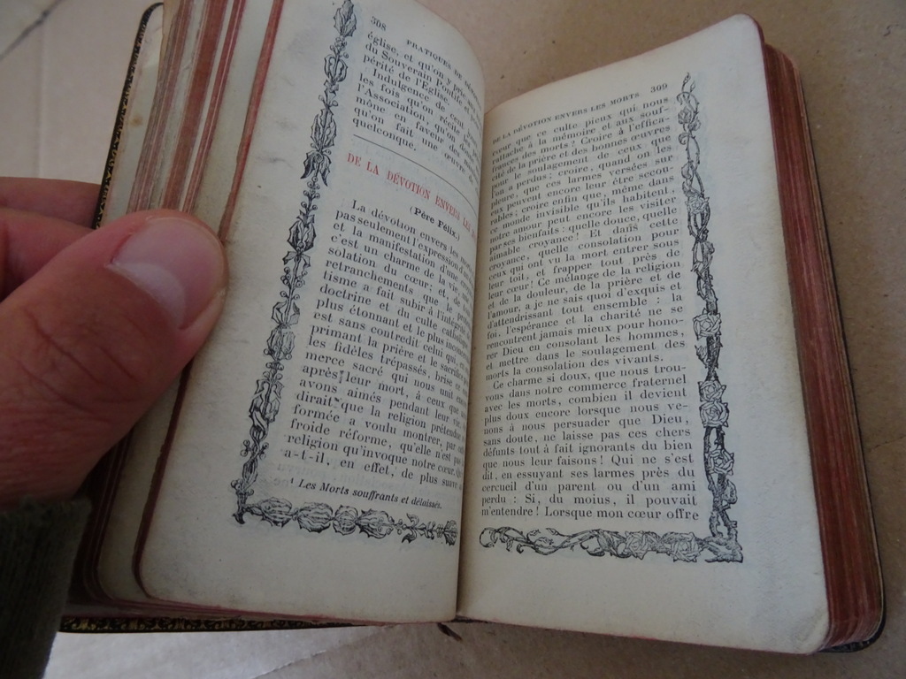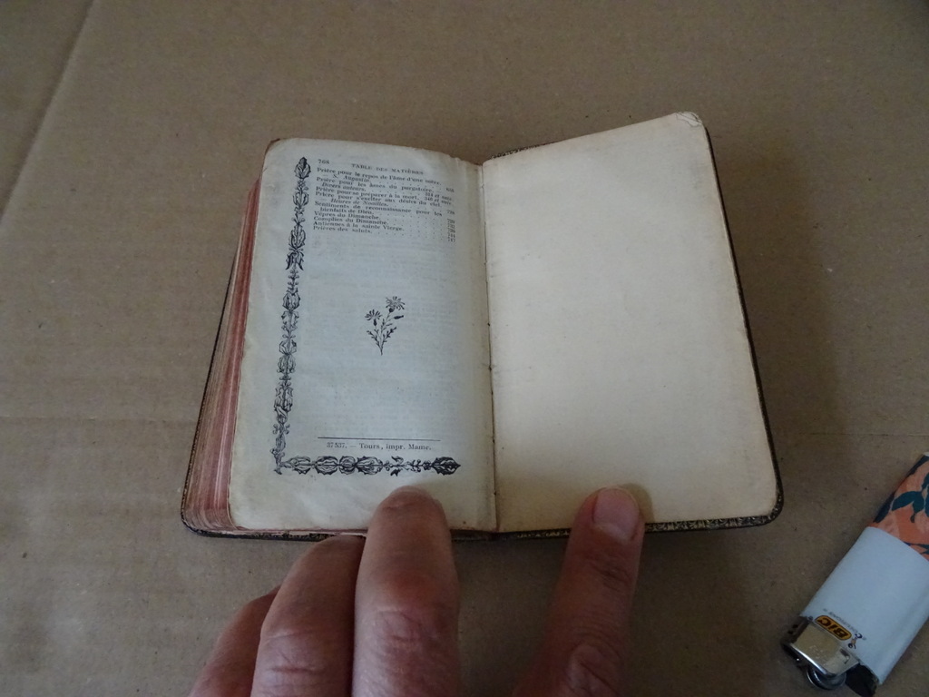 Antiek verguld Recueil de prières de meditations et de lectures, eerste of latere druk uit 1918. Afkomstig uit de collectie van een pastoor op leeftijd. In goede gebruikte staat, gelezen. Er zijn wat vouwtjes door het hele boek maar de tekst is nog goed te lezen. 768 pagina’s.