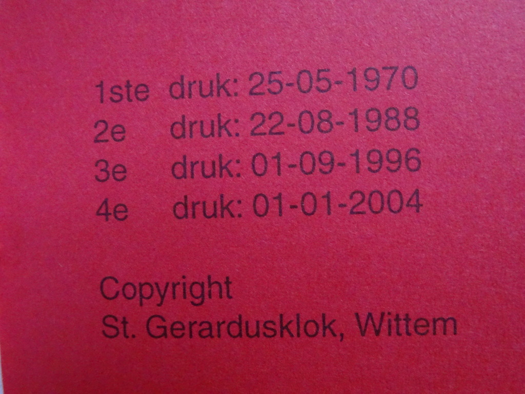 Bidden met Gerardus Noveenboekje, vierde druk uit 2004. Afkomstig uit de collectie van een pastoor op leeftijd. In een prachtige gebruikte staat, van binnen nog mooi, ongelezen. 36 Pagina’s. Nog 2 Exemplaren op voorraad voor 9 euro per stuk. Dit zijn vierde drukken uit 2004, zie foto’s. De eerste druk uit 1970 is inmiddels verkocht.