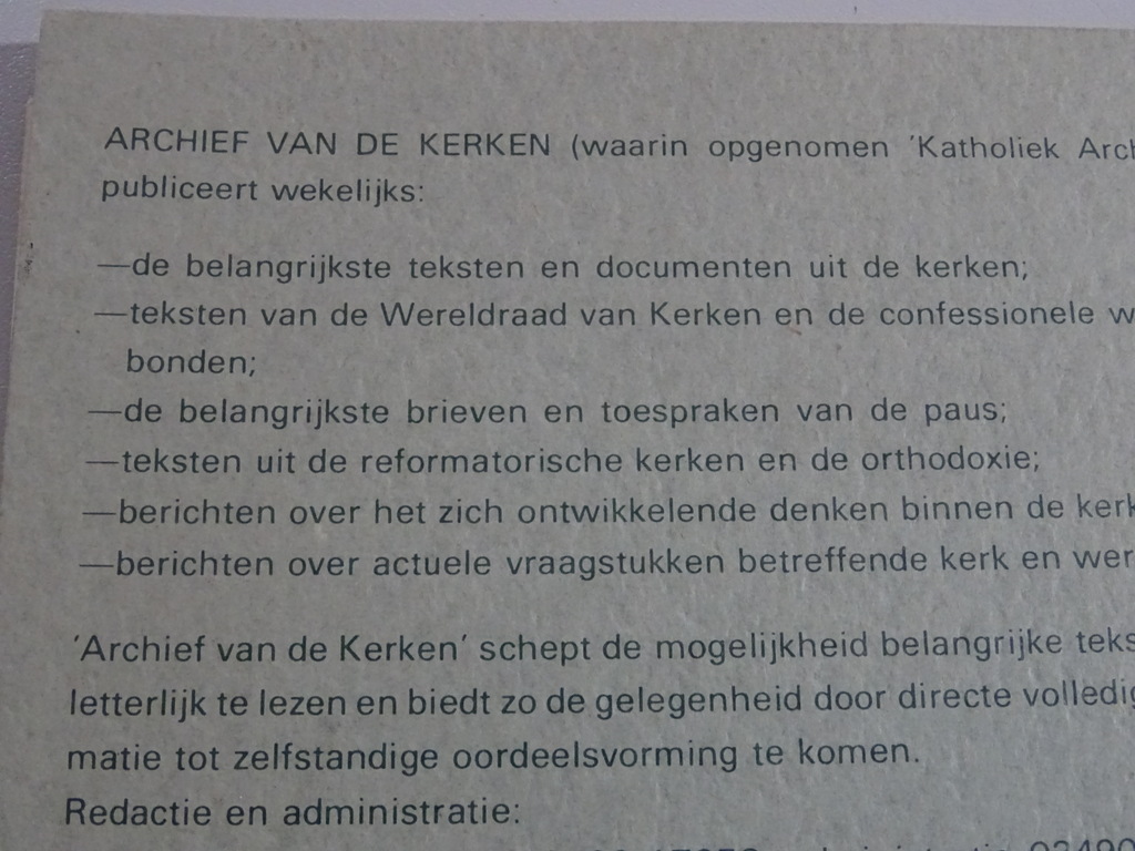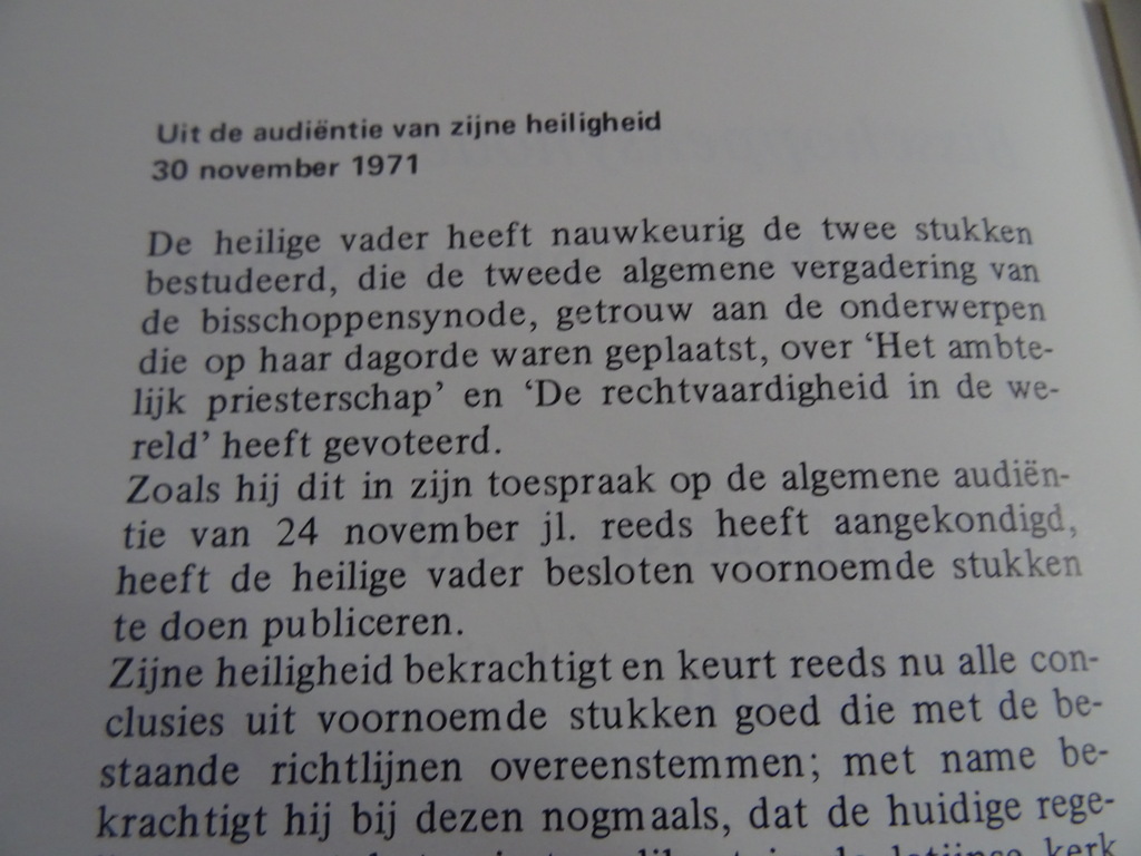 Bisschoppensynode Het ambtelijk priesterschap en De rechtvaardigheid in de wereld, eerste druk uit 1972. Afkomstig uit de collectie van een pastoor op leeftijd. In een prachtige gebruikte staat. Gelezen maar nog vrij netjes, enkele kleine vouwtjes. 50 Pagina’s. Compleet met Begeleidend schrijven van 8 pagina’s.