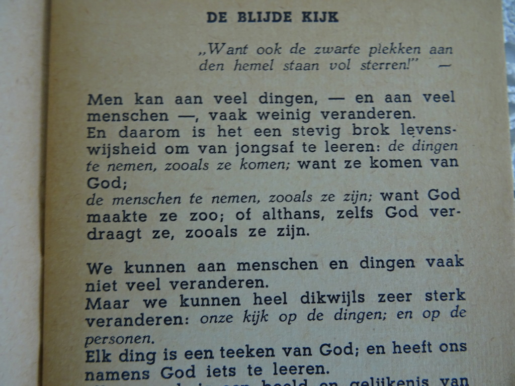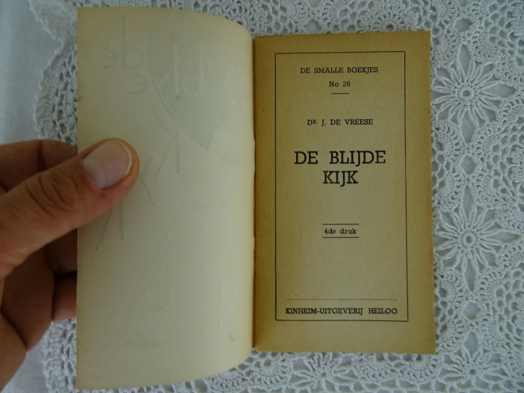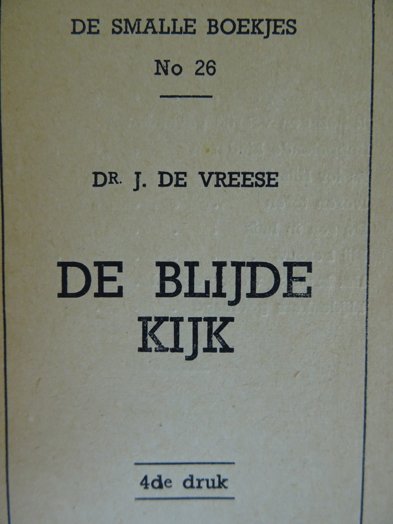 De blijde kijk Dr. J. de Vreese uit circa 1935. Het schitterende antieke boekje is nog in vrij goede staat en heeft 30 Bladzijdes. Het is No 26 uit de serie De smalle boekjes.