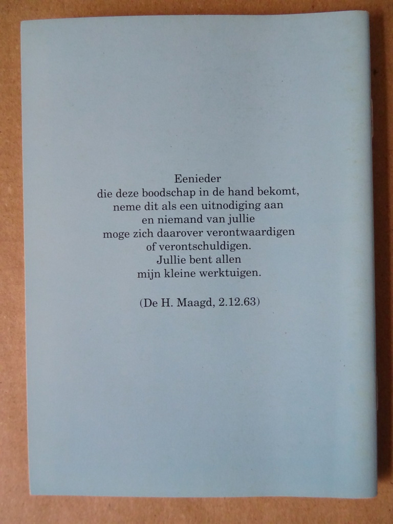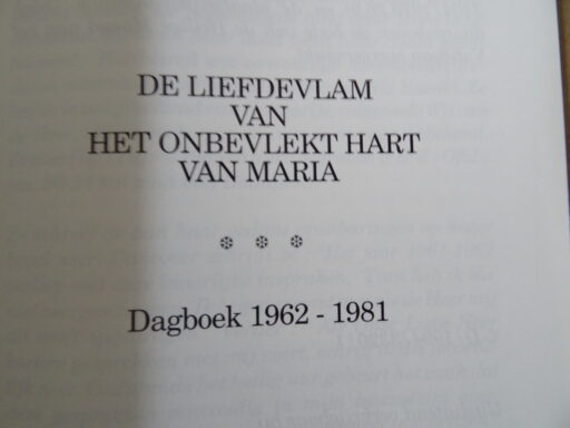 De Liefdevlam van het onbevlekt hart van Maria, Dagboek 1961-1982, eerste druk uit 1994. In prachtige gebruikte staat, zie foto’s. Van binnen nog mooi, lijkt ongelezen. 48 pagina’s. Zeldzaam.