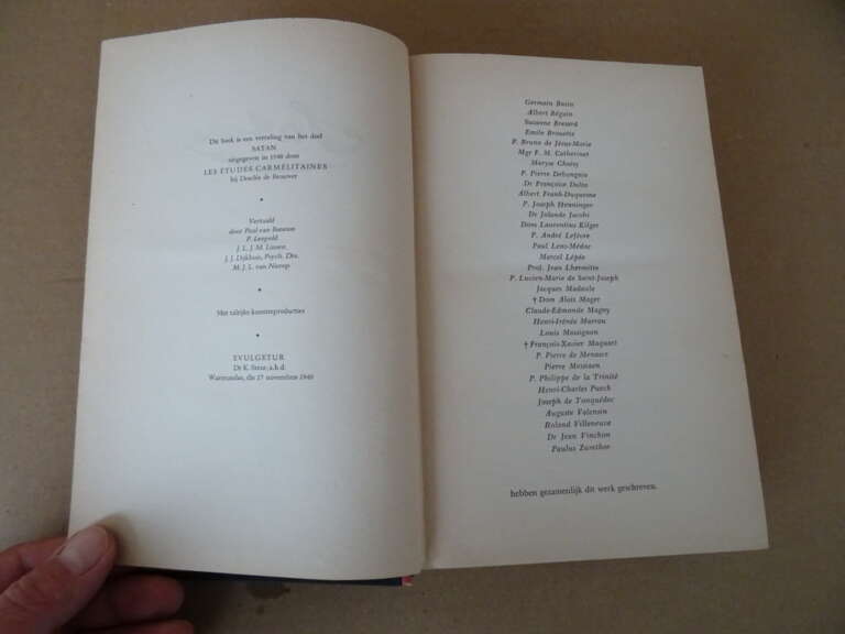 Diverse auteurs Satan, eerste Nederlandse druk uit 1949. Zeer zeldzaam boek afkomstig uit de collectie van een pastoor op leeftijd. In een prachtige gebruikte staat, van binnen nog mooi, ongelezen. 666 Pagina’s.