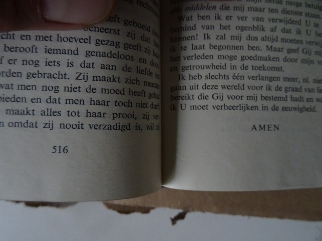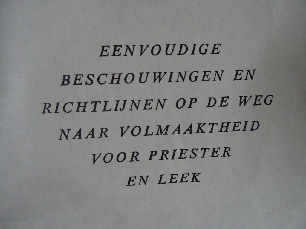 Dr. B. Naaijkens Slechts een ding is noodzakelijk, Eenvoudige beschouwingen en richtlijnen op de weg naar volmaaktheid voor priester en leek, tweede druk uit 1954. In goede gebruikte staat, plakband voorin en lichte slijtage aan kaft, zie foto’s. Van binnen afgezien daarvan nog mooi, lijkt haast ongelezen. 516 pagina’s. Afkomstig uit de collectie van een pastoor op leeftijd.