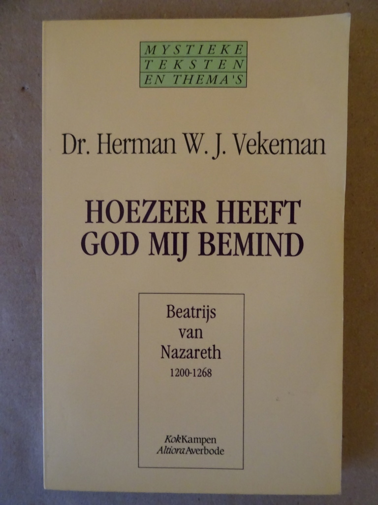 Dr. Herman J. W. Vekeman Hoezeer heeft God mij bemind, Beatrijs van Nazareth 1200-1268, eerste of latere druk uit 1993. Mystieke teksten en thema’s 7. In prachtige gebruikte staat, hoekje wat verbogen, zie foto’s. Van binnen nog mooi afgezien daarvan en enkele vouwtjes, lijkt ongelezen of haast ongelezen. 185 pagina’s.