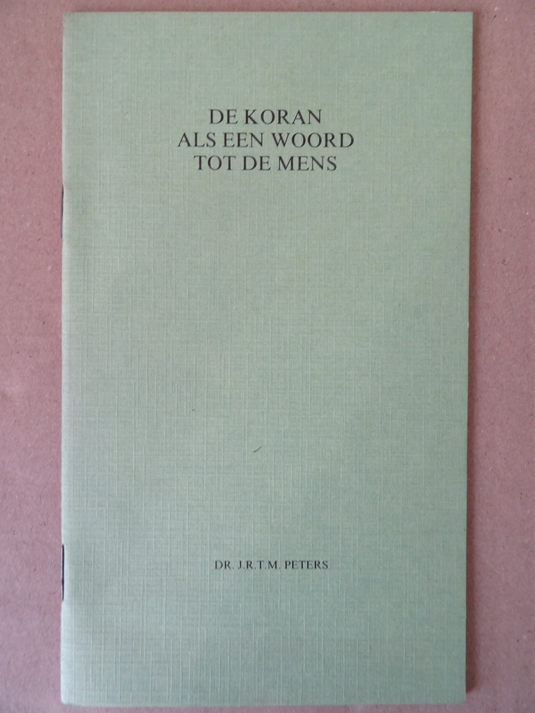 Dr. J. R. T. M. Peters De Koran als een woord tot de mens, eerste druk uit 1977. In schitterende gebruikte staat, zie foto’s. Van binnen nog mooi, ongelezen. 28 pagina’s.
