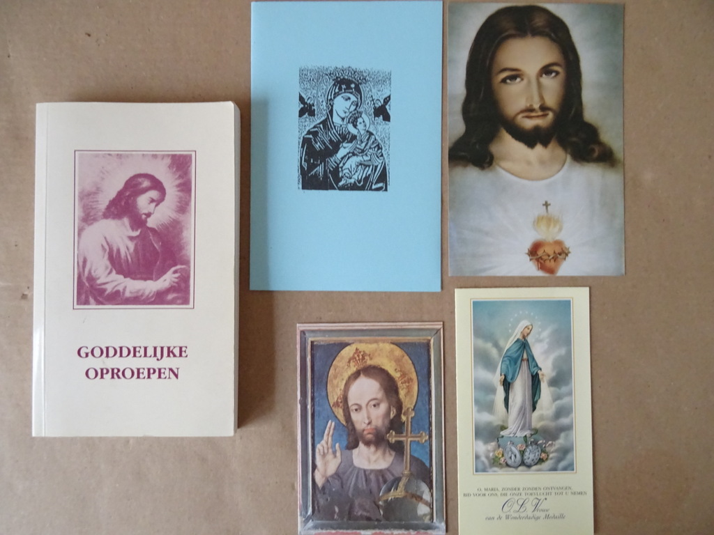 E. H. Kanunnik Milcent Goddelijke oproepen, tweede Nederlandse druk uit 1974. Originele titel; Divins Appels. In schitterende gebruikte staat, zie foto’s. Van binnen nog mooi, lijkt ongelezen. 365 pagina’s. In het boek vond ik nog 4 mooie prentjes, zie foto’s.