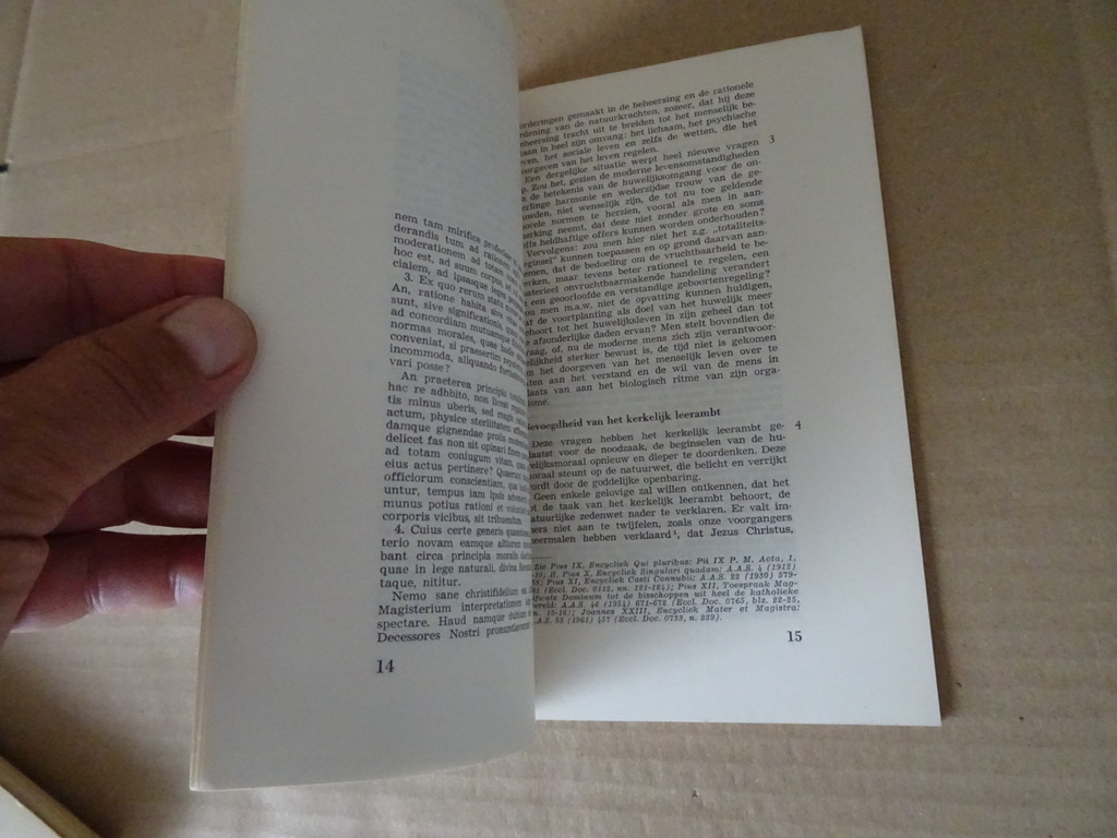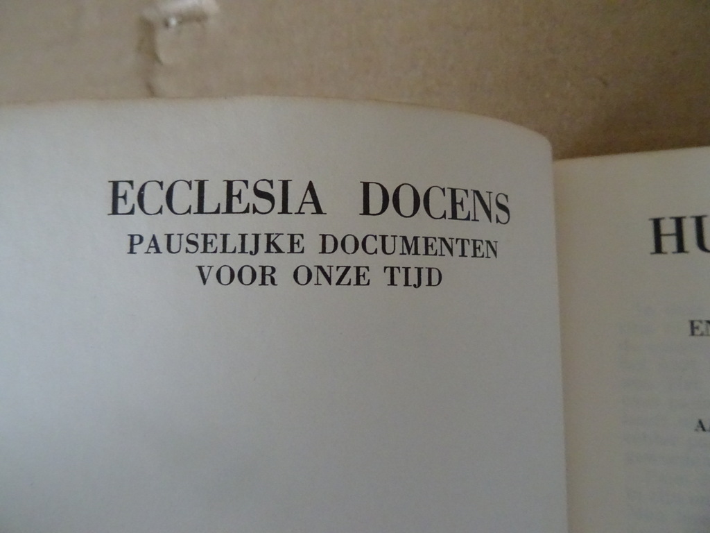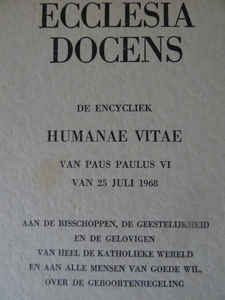 Ecclesia Docens de Encycliek Humanae Vitae van paus Paulus VI van 25 juli 1968, eerste druk uit 1968. Zeldzaam boekje in een prachtige gebruikte staat, zie foto’s. Van binnen nog mooi, lijkt ongelezen of haast ongelezen. 55 pagina’s. Afkomstig uit de collectie van een pastoor op leeftijd. Deze bekende encycliek gaat over de traditionele katholieke leer over het huwelijk, seksualiteit en geboorteregeling.