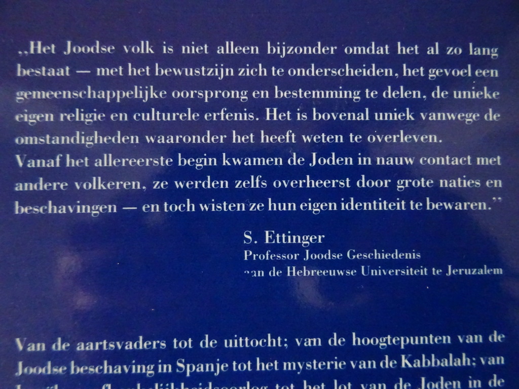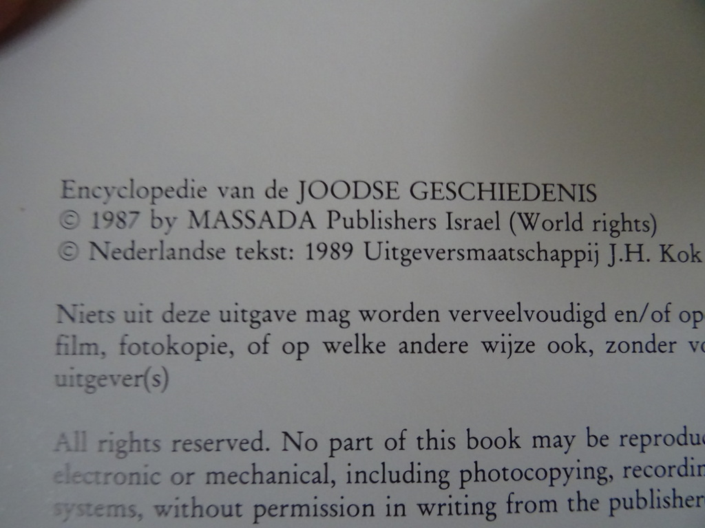 Encyclopedie van de joodse geschiedenis, Het joodse volk door de eeuwen heen, eerste Nederlandse druk uit 1989. Afkomstig uit de collectie van een pastoor op leeftijd. In goede gebruikte staat, slechts wat vlekjes aan de buitenkant. Voornamelijk aan de bovenzijde en licht aan de zijkant, zie foto’s. Van binnen geen vlekjes en nog mooi, lijkt ongelezen. 284 pagina’s. De kaft van dit boek was ingewikkeld in cellofaan, zie laatste 10 foto’s. Dit heb ik zojuist verwijderd. Hierdoor is de buitenkant heel mooi gebleven.