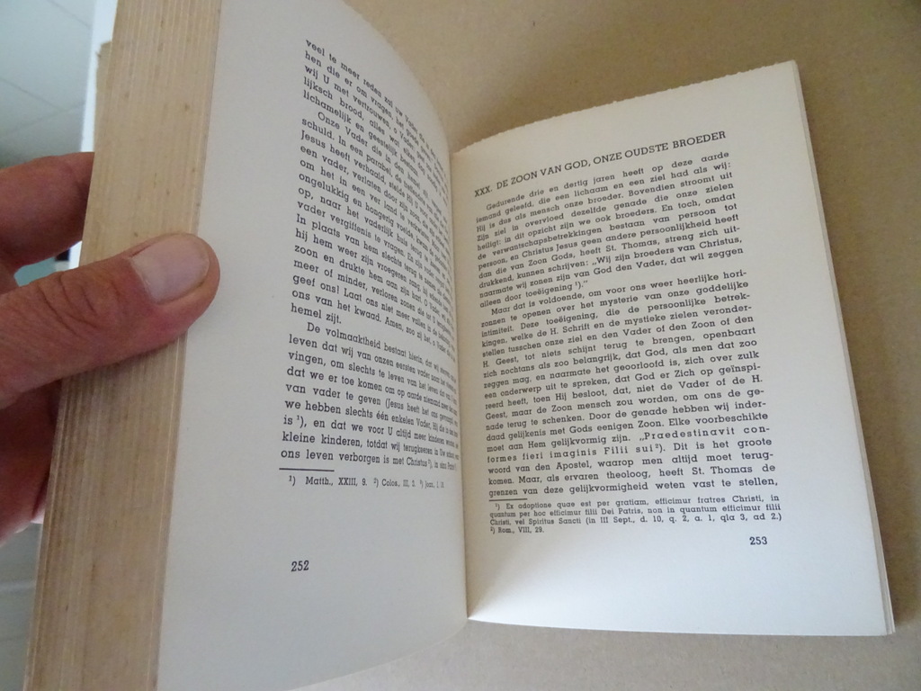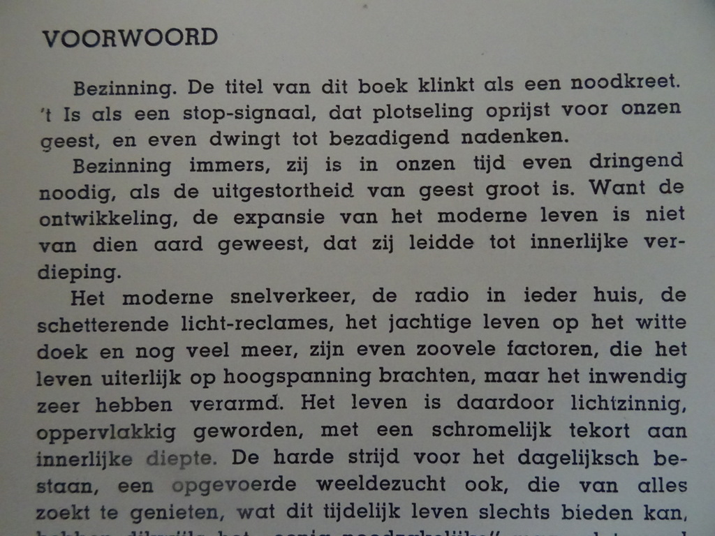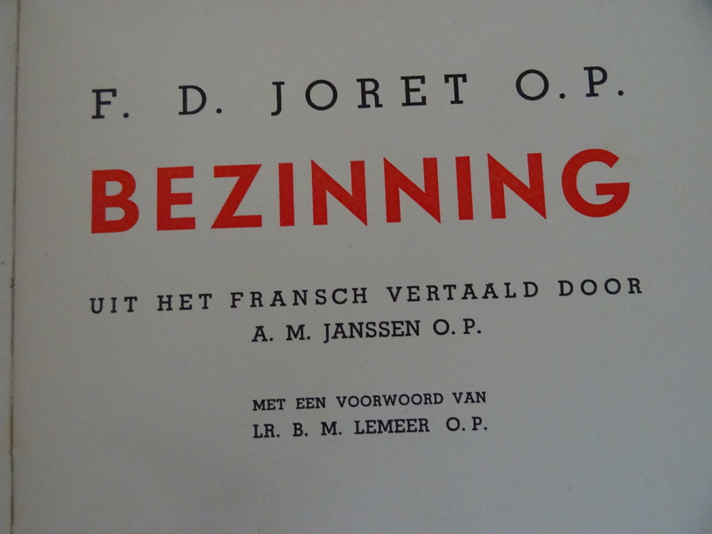 F. D. Joret O.P. Bezinning, eerste Nederlandse druk uit 1937. In goede gebruikte staat, fragiele kaft, zie foto’s. Van binnen nog best mooi, lijkt ongelezen. Enkele pagina’s dienen nog losgesneden te worden. 331 pagina’s. Afkomstig uit de collectie van een pastoor op leeftijd.