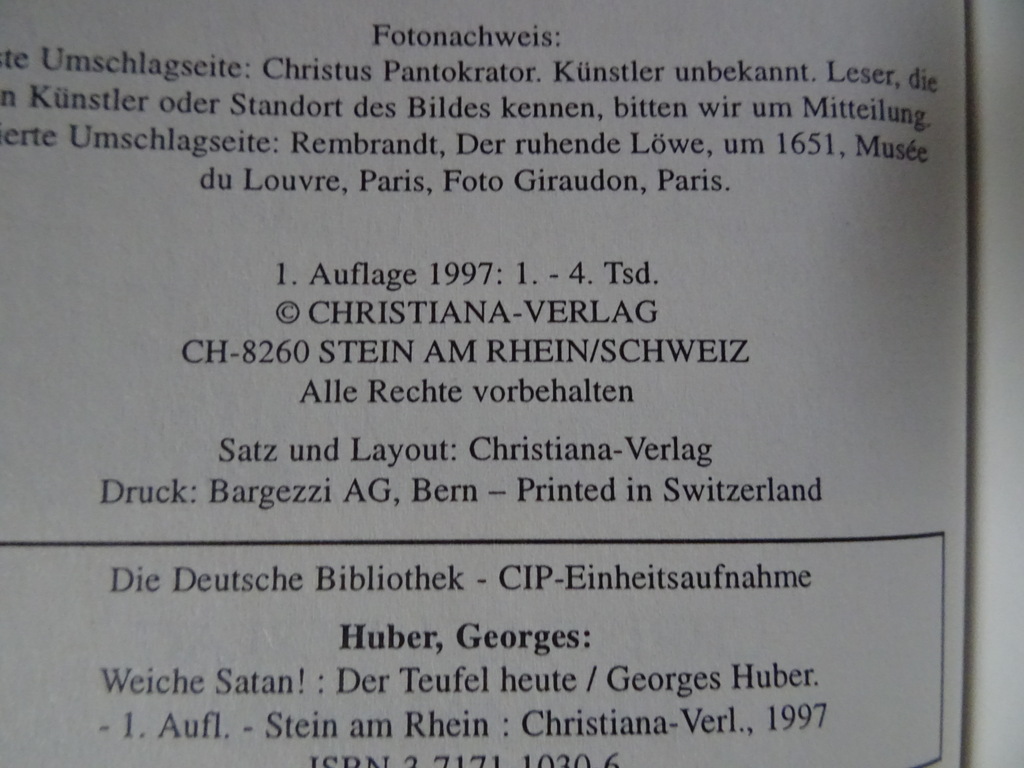 Georges Huber Weiche Satan! mogelijk eerste druk uit 1997. Duitse boekje in nieuw staat, ongelezen. 141 pagina’s.