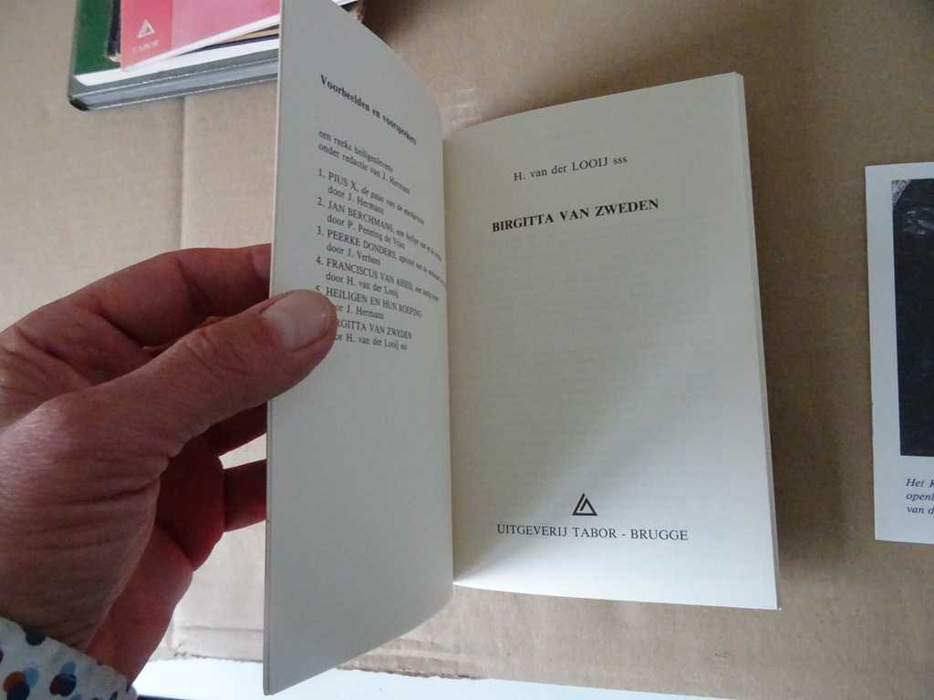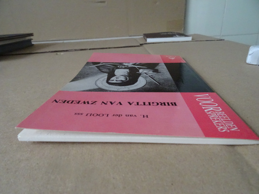 H. van der Looij sss Birgitta van Zweden, eerste druk uit 1990. Levend Brood 9. In een prachtige gebruikte staat, zie foto’s. Van binnen nog mooi, lijkt ongelezen. 32 pagina’s. Afkomstig uit de collectie van een pastoor op leeftijd. Twee exemplaren op voorraad voor 19 euro per stuk. Het tweede exemplaar slechts licht verkleurd en licht verbogen, zie foto’s. Zeldzaam.