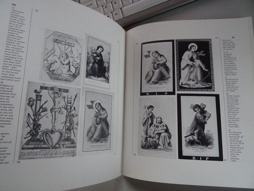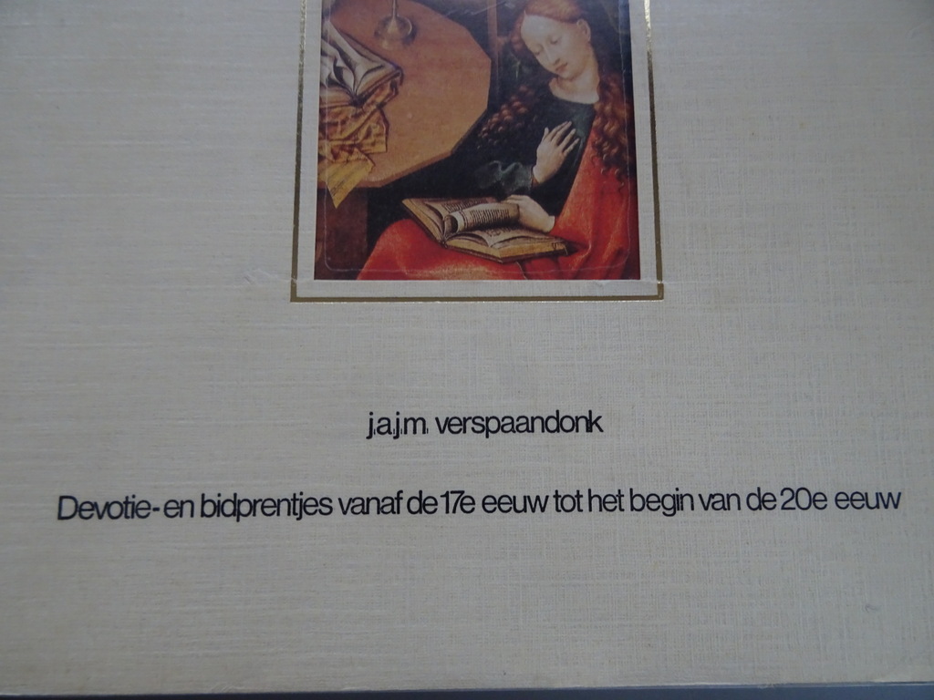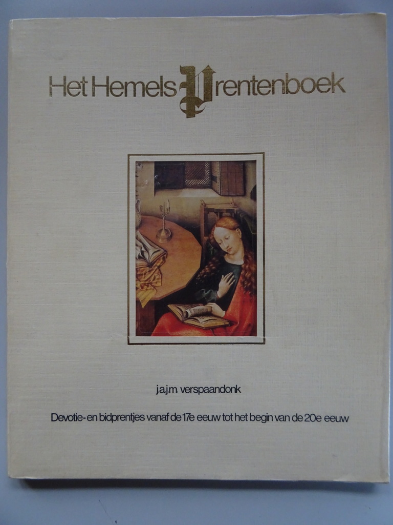 J.A.J.M. Verspaandonk Het Hemels Prentenboek, Devotie- en bidprentjes vanaf de 17e eeuw tot begin 20e eeuw, eerste druk uit 1975. Afkomstig uit de collectie van een pastoor op leeftijd. Het boek is in goede gebruikte staat, hier en daar een vouwtje of vlekje, zie foto’s. Van binnen nog mooi, lijkt ongelezen. 132 pagina’s. Met schitterende afbeeldingen van oude prenten.