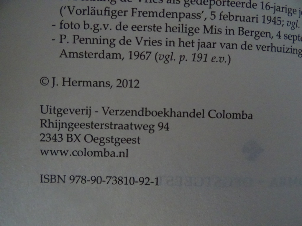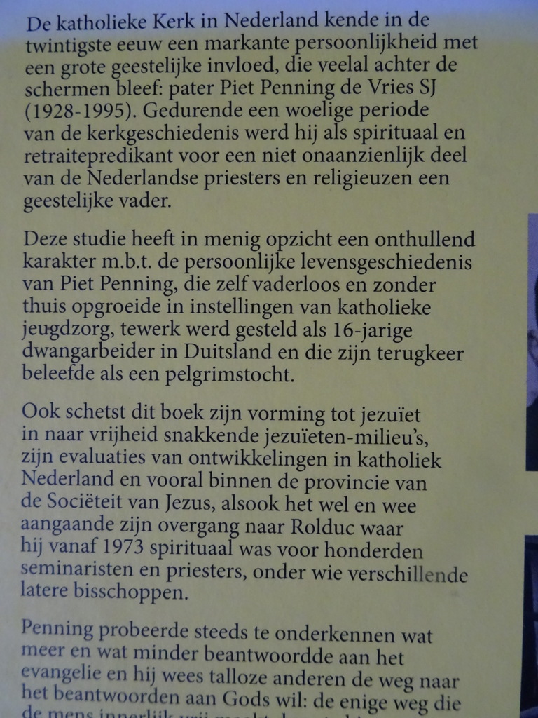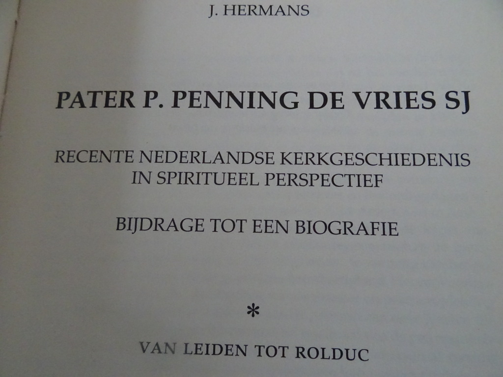 J. Hermans P. Penning de Vries SJ, Recente Nederlandse kerkgeschiedenis in spiritueel perspectief, Bijdrage tot een biografie, Van Leiden tot Rolduc, eerste druk uit 2012. In een schitterende gebruikte staat, zie foto’s. Van binnen nog mooi, lijkt ongelezen. 252 pagina’s. Afkomstig uit de collectie van een pastoor op leeftijd. Pater Piet Penning de Vries S.J. (1928 – 1995) was een Nederlandse priester, jezuïet, spirituaal te Rolduc en dichter van kerkliederen. Er zijn ook enkele boeken op voorraad die geschreven zijn door hem.