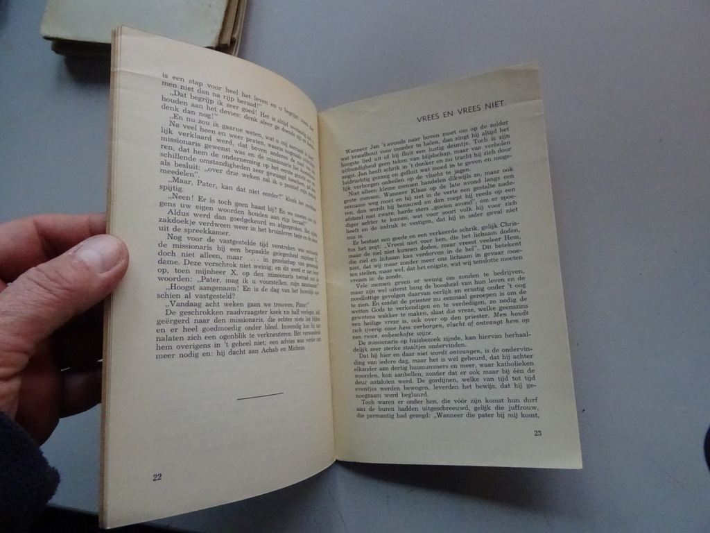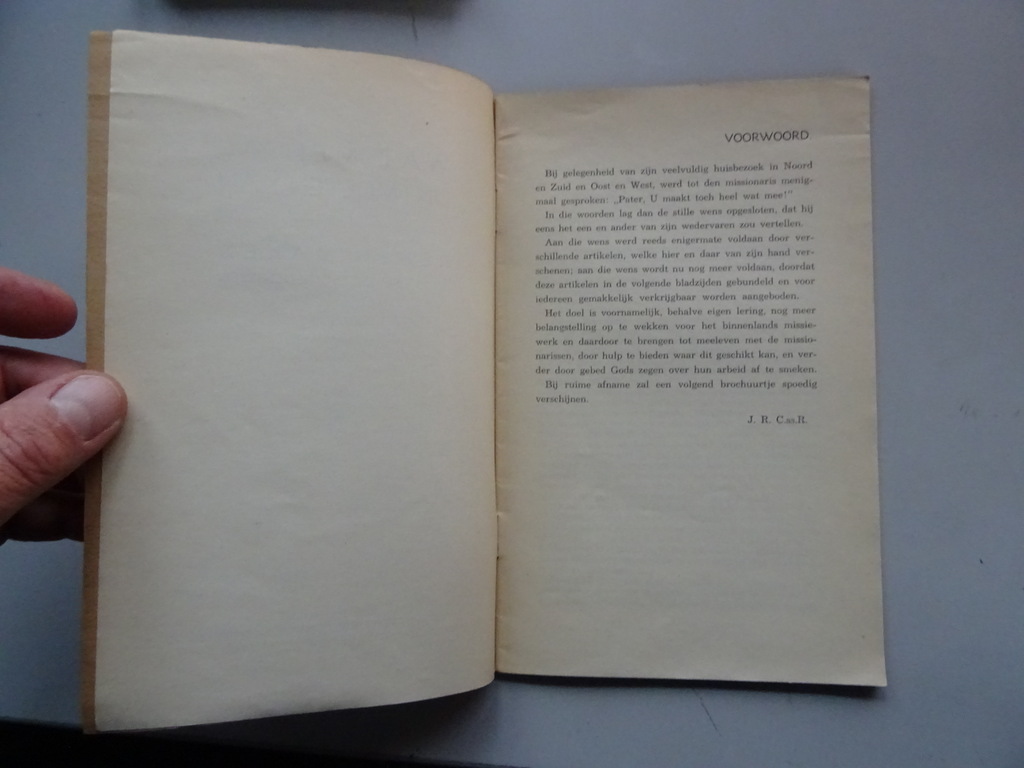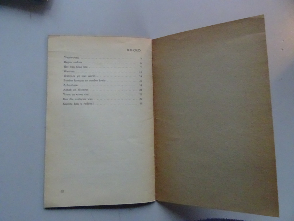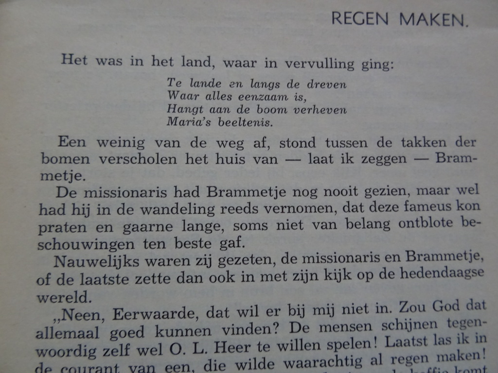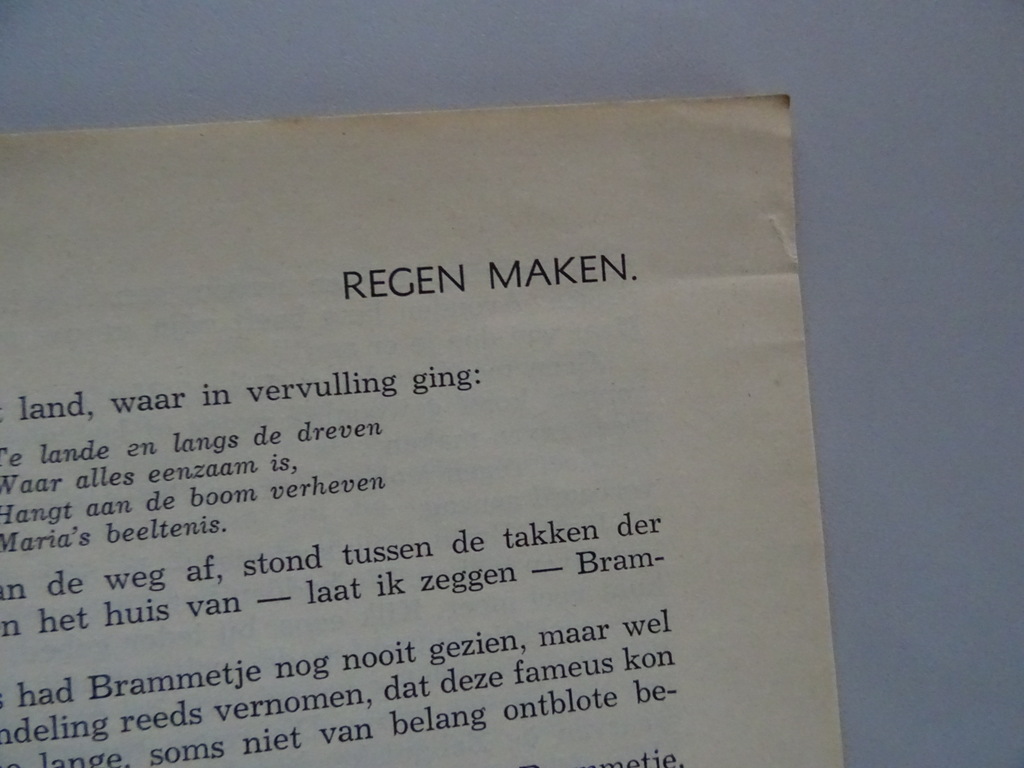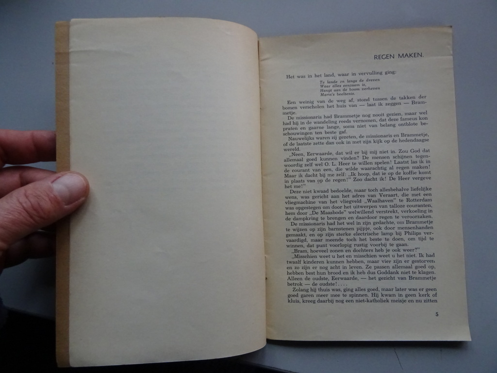 J. R. redemptorist Wat men al ontmoeten kan, Regen maken en andere geschiedenissen, eerste druk uit 1936. Afkomstig uit de collectie van een pastoor op leeftijd. Zeldzaam boekje in goede gebruikte staat, zie foto’s. Van binnen nog best net, ongelezen of haast ongelezen. 31 pagina’s.