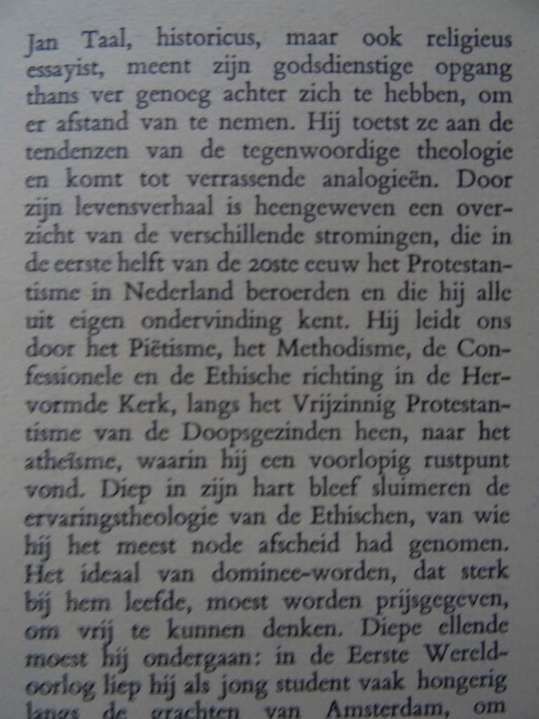 Jan Taal Door vrij denken tot christelijk geloven, eerste druk uit 1966. Afkomstig uit de collectie van een pastoor op leeftijd. In een prachtige gebruikte staat, van binnen nog mooi, ongelezen. Het losse omslagblad heeft slechts wat te lijden gehad. Ik heb het geplakt met plakband, zie foto’s. 215 Pagina’s.
