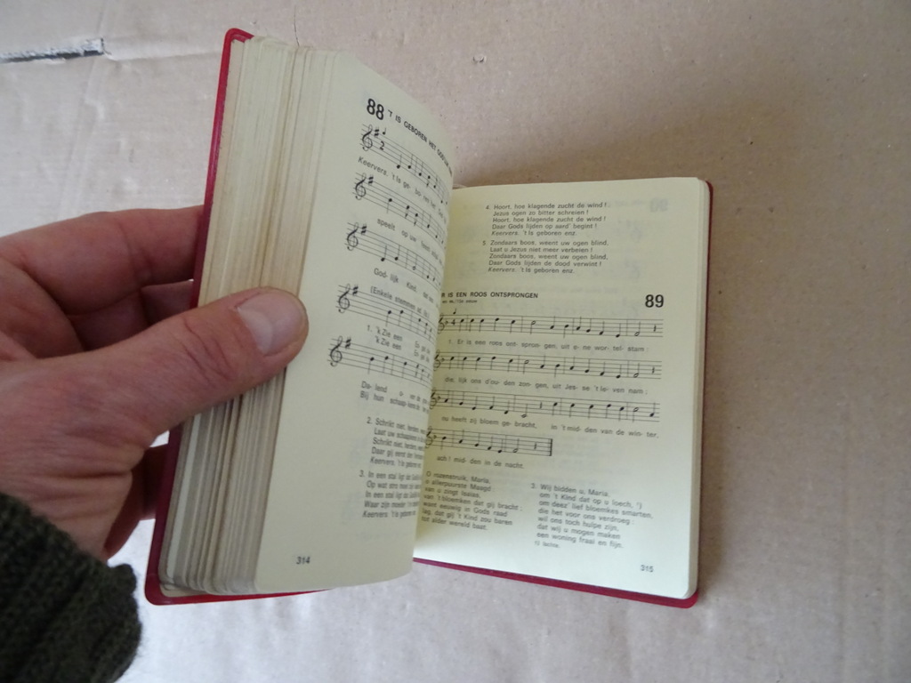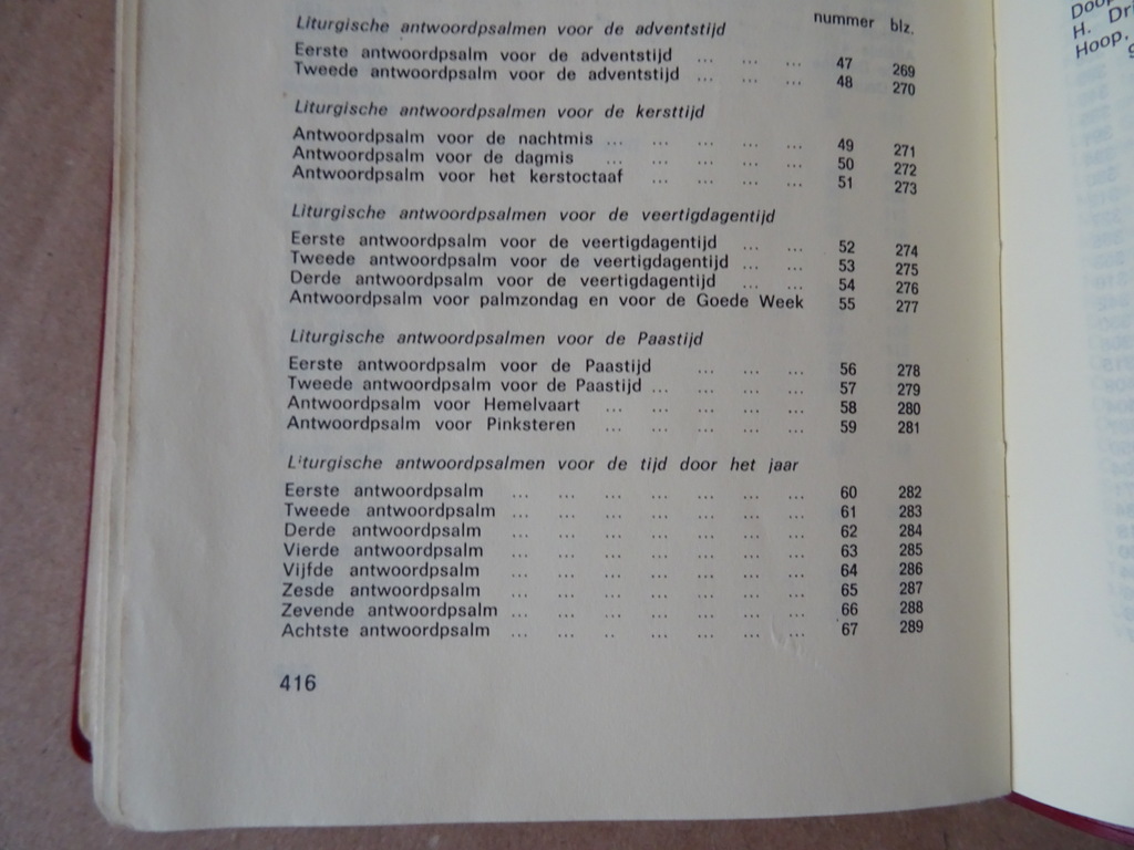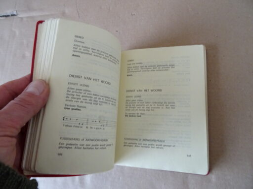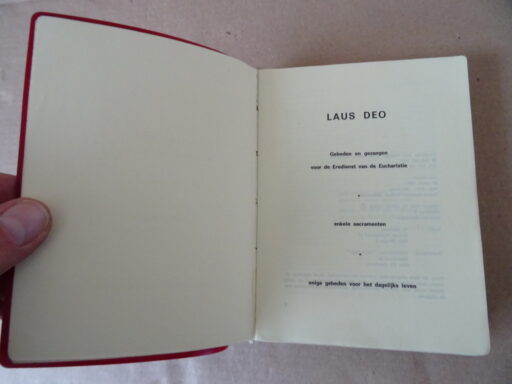 Laus Deo Gebeden en gezangen voor de Eredienst van de Eucharistie, enkele sacrementen, enige gebeden voor het dagelijks leven, eerste druk uit 1981. In schitterende gebruikte staat, zie foto’s. Van binnen nog best mooi, weinig leessporen, lijkt haast ongelezen. 421 pagina’s aangevuld met (ingeplakte) extra gezangen. In totaal 231 gezangen. Afkomstig uit de collectie van een pastoor op leeftijd. Een prachtige liturgische bundel samengesteld door o.a. Prof. dr. H.P.M. Litjens. Het bevat teksten voor eucharistievieringen, sacramenten (zoals doopsel of huwelijk) en gebeden voor het dagelijks leven, vaak gebruikt als gezangboek of gebedenboek in de katholieke traditie. Zeldzaam.