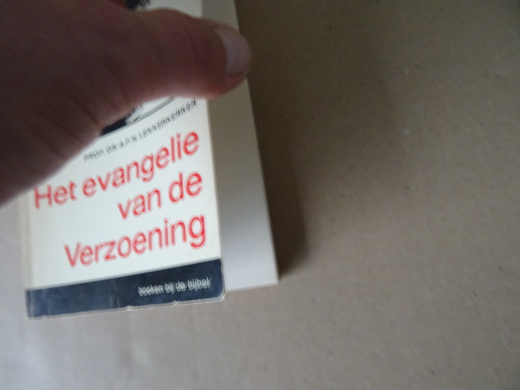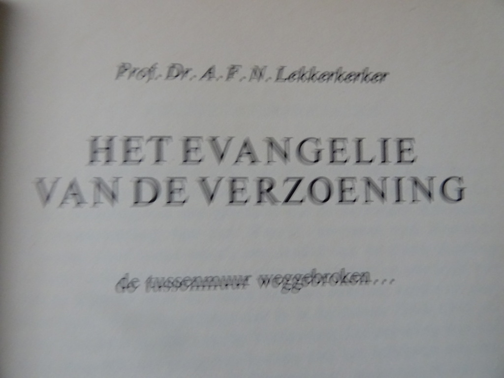 Lekkerkerker Het evangelie van de Verzoening oftewel Prof. Dr. A. F. N. Lekkerkerker Het evangelie van de Verzoening, eerste druk uit 1966. In goede gebruikte staat, aan de bovenkant wat vlekjes (buitenkant), vouwtje in achterkant kaft, zie foto’s. Van binnen nog mooi, lijkt ongelezen of haast ongelezen. 157 pagina’s. Afkomstig uit de collectie van een pastoor op leeftijd.