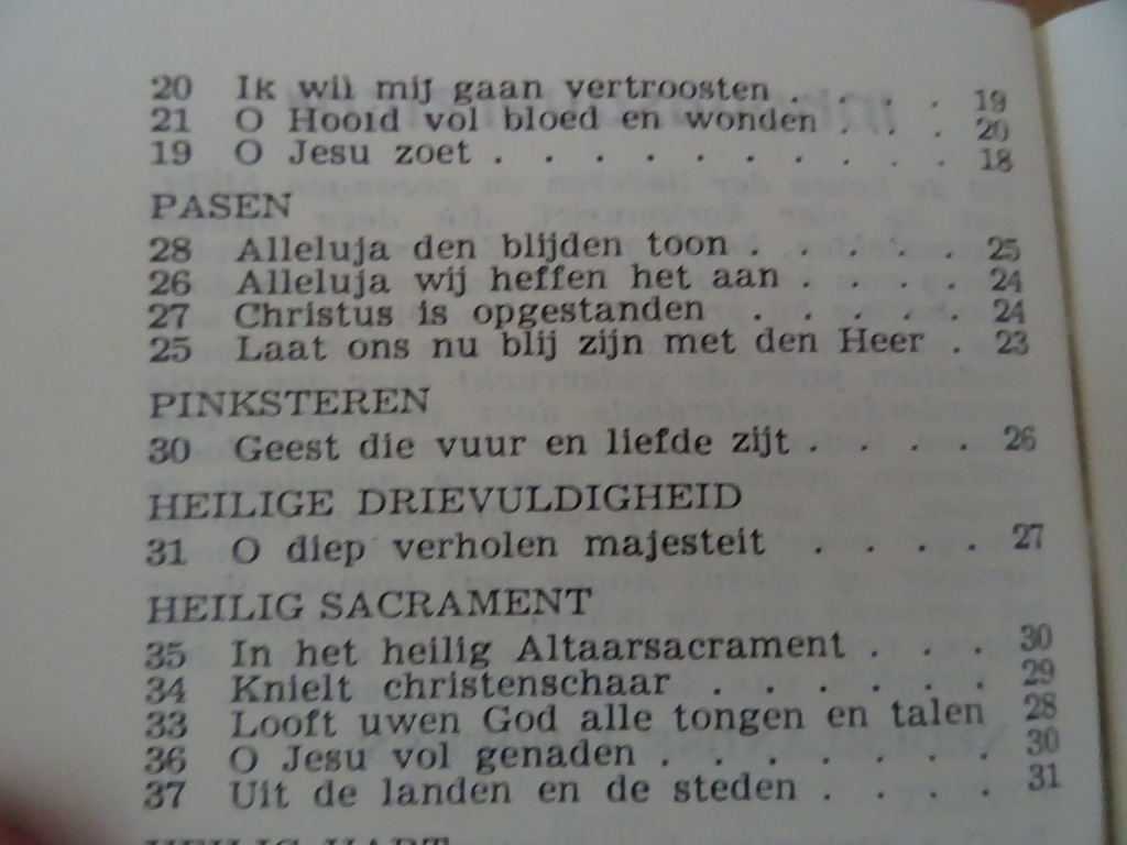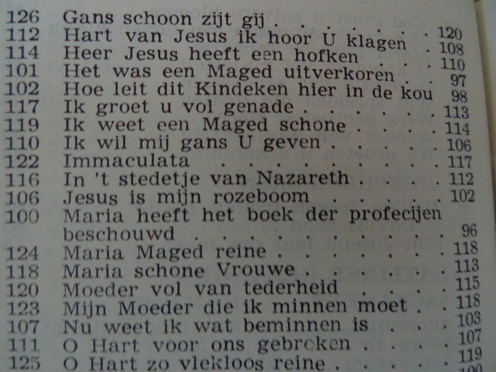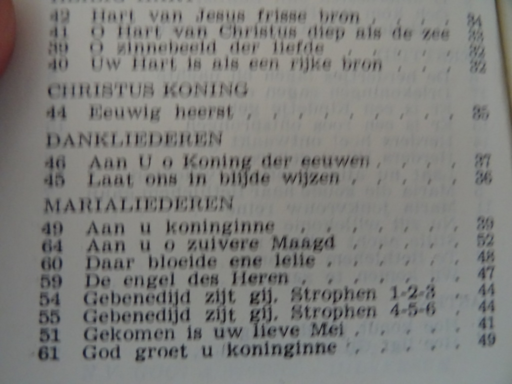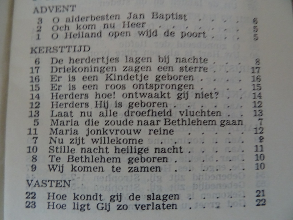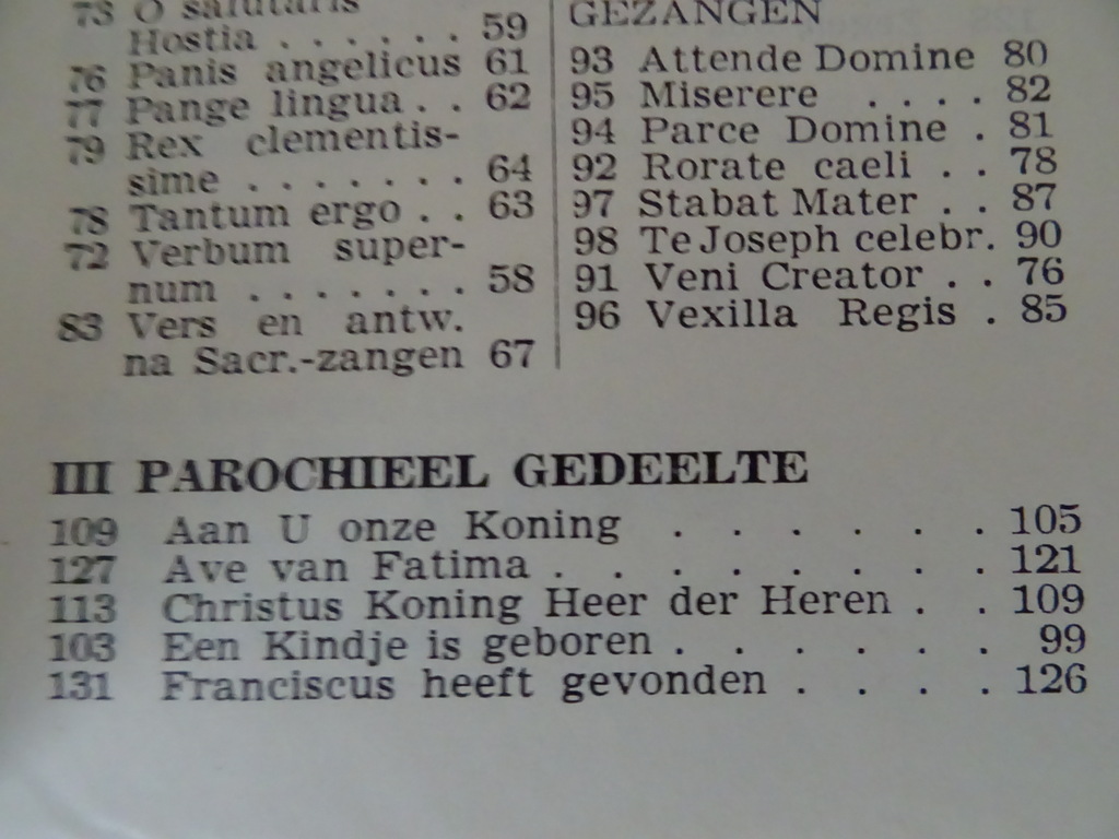 Liederenbundel van het St. Jozef Instituut Valkenburg, mogelijk 1e druk uit 1950 of iets later. Prachtig boekje in zakformaat gevuld met 131 religieuze liederen in het Nederlands. 126 pagina’s. In nog vrij goede staat, lijkt ongelezen of haast ongelezen. Minstens 50 exemplaren op voorraad, de meeste in nog vrij goede staat, (haast) ongelezen. Een aantal is gekaft met zwart papier, zie laatste foto’s. 9 euro per stuk, korting bij meerdere exemplaren. Doe gerust een bod op alle boekjes. Dit boekje is nergens anders verkrijgbaar!