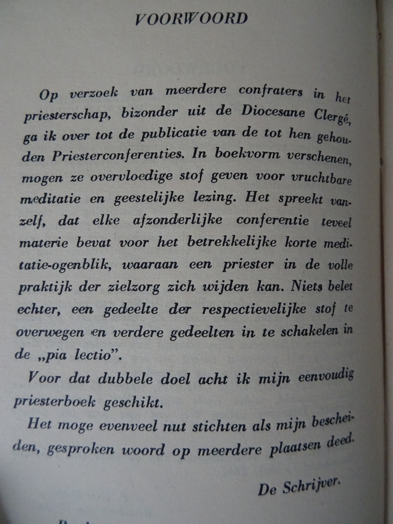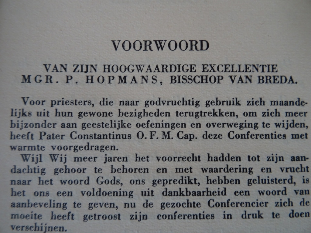 P. Constantinus O.F.M. Cap. Speculum Christi, Een verzameling van 45 conferenties gehouden voor Priesters, eerste deel, eerste druk uit 1947. Afkomstig uit de collectie van een pastoor op leeftijd. In een prachtige gebruikte staat, wat verbogen. Van binnen nog vrij mooi, ongelezen of weinig gelezen. 507 Pagina’s. Een zeldzaam boek, u vindt het alleen bij ons. Deel 3 is ook op voorraad.