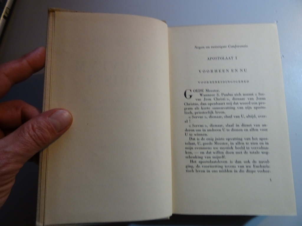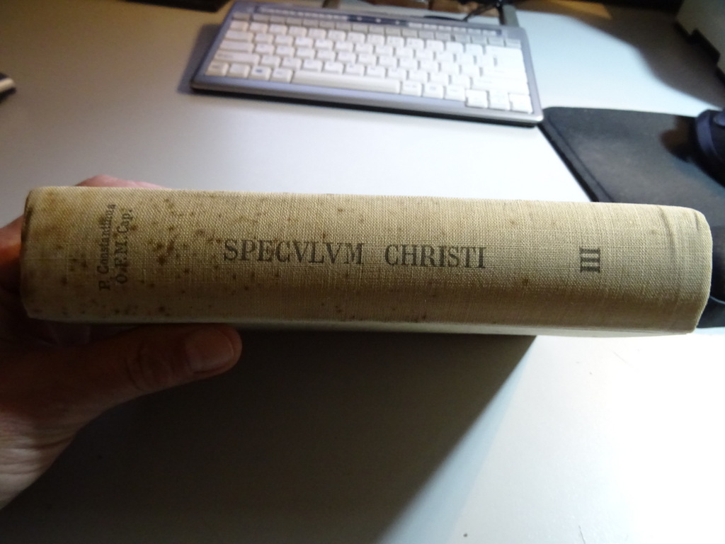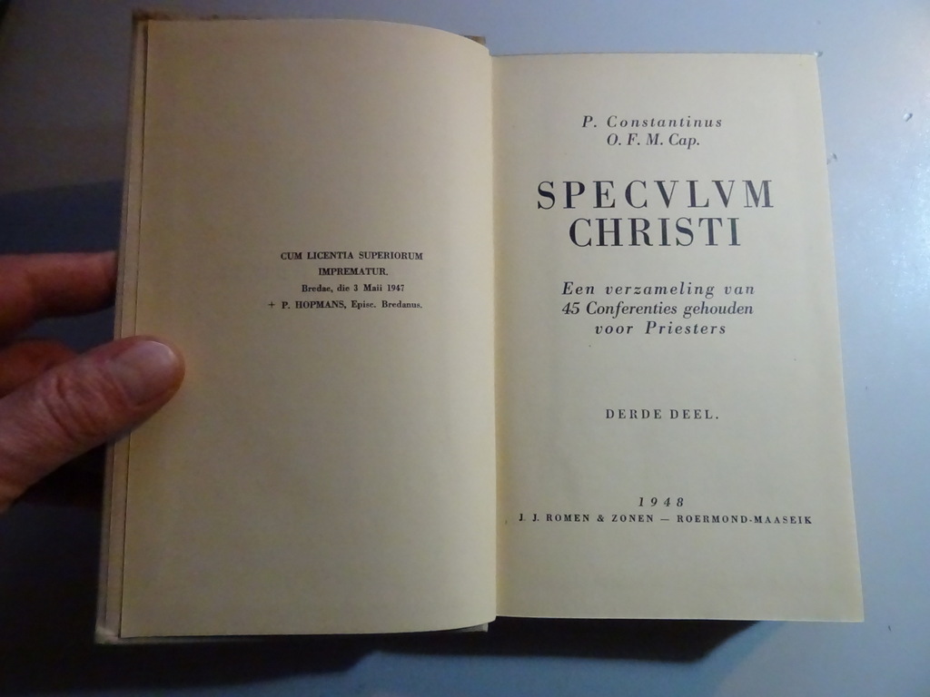 P. Constantinus Speculum Christi, Een verzameling van 45 conferenties gehouden voor priesters, derde deel, eerste druk uit 1948. Afkomstig uit de collectie van een pastoor op leeftijd. In goede gebruikte staat, van binnen nog mooi, lijkt ongelezen. 585 pagina’s. Deel 1 is ook op voorraad.