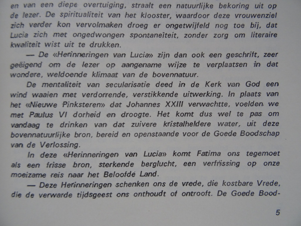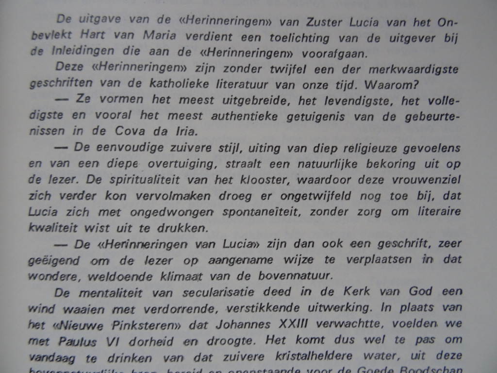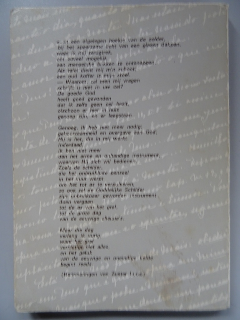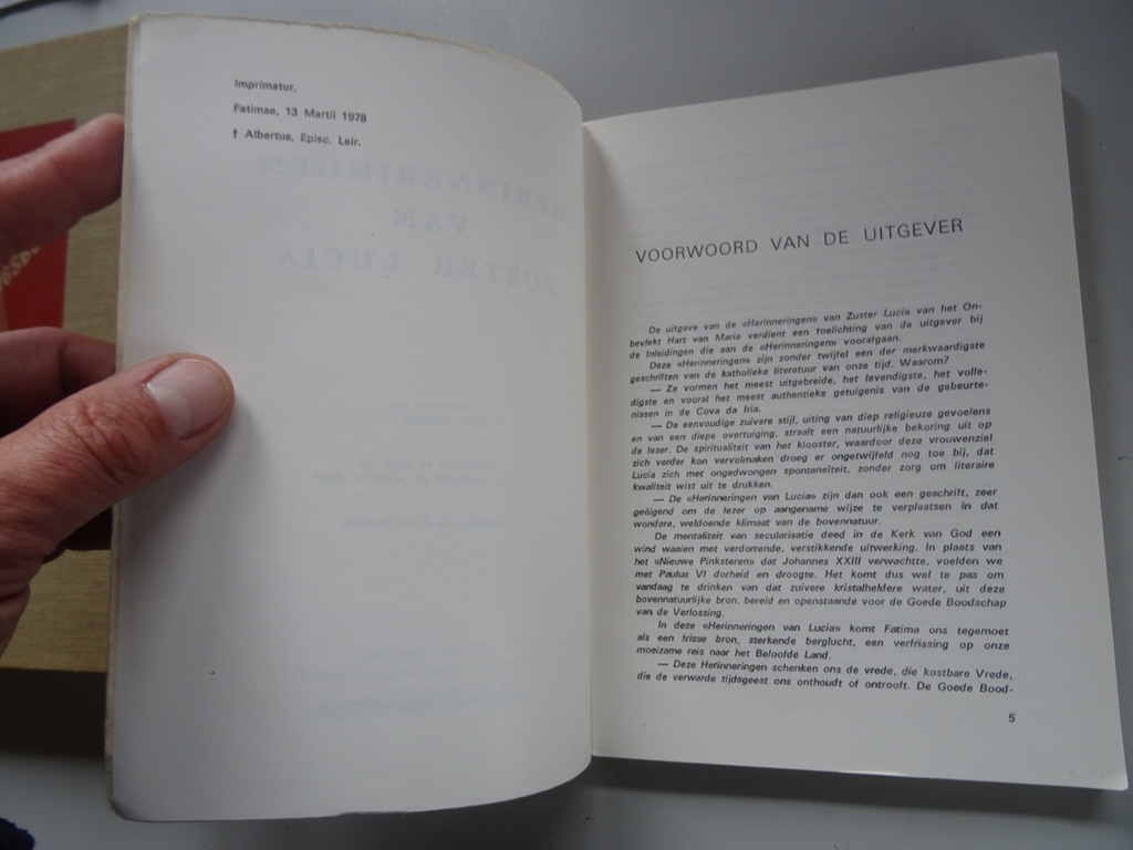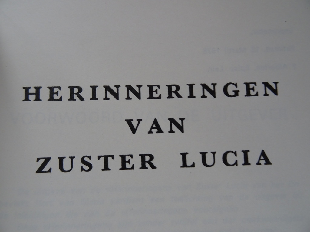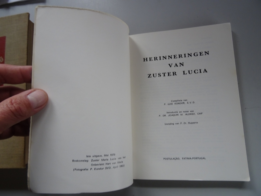 P. Luis Kondor S.V.D. Herinneringen van zuster Lucia, eerste druk uit 1978. In een prachtige gebruikte staat, zie foto’s. Van binnen nog mooi, lijkt ongelezen. 214 pagina’s. Afkomstig uit de collectie van een pastoor op leeftijd.