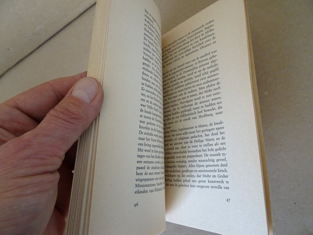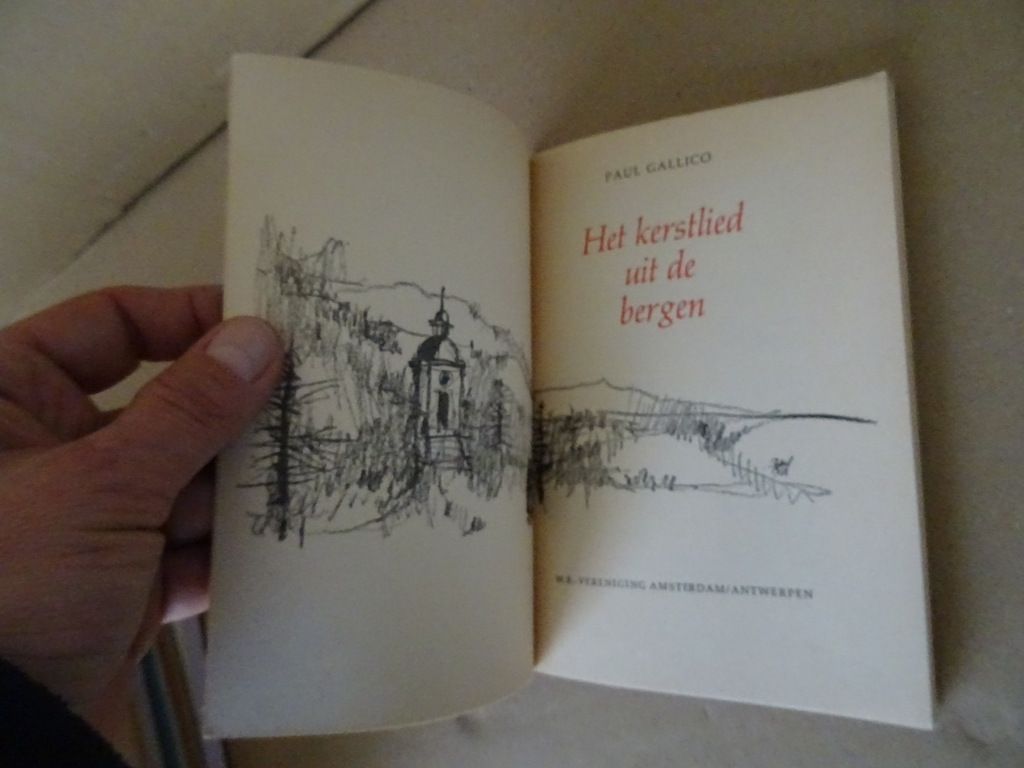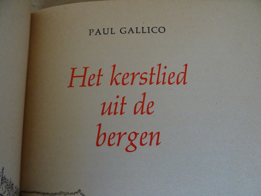 Paul Gallico Het kerstlied uit de bergen, eerste druk uit 1968. In een prachtige gebruikte staat, wat verbogen, zie foto’s. Van binnen nog best mooi afgezien daarvan, lijkt ongelezen. 55 pagina’s. Afkomstig uit de collectie van een pastoor op leeftijd.