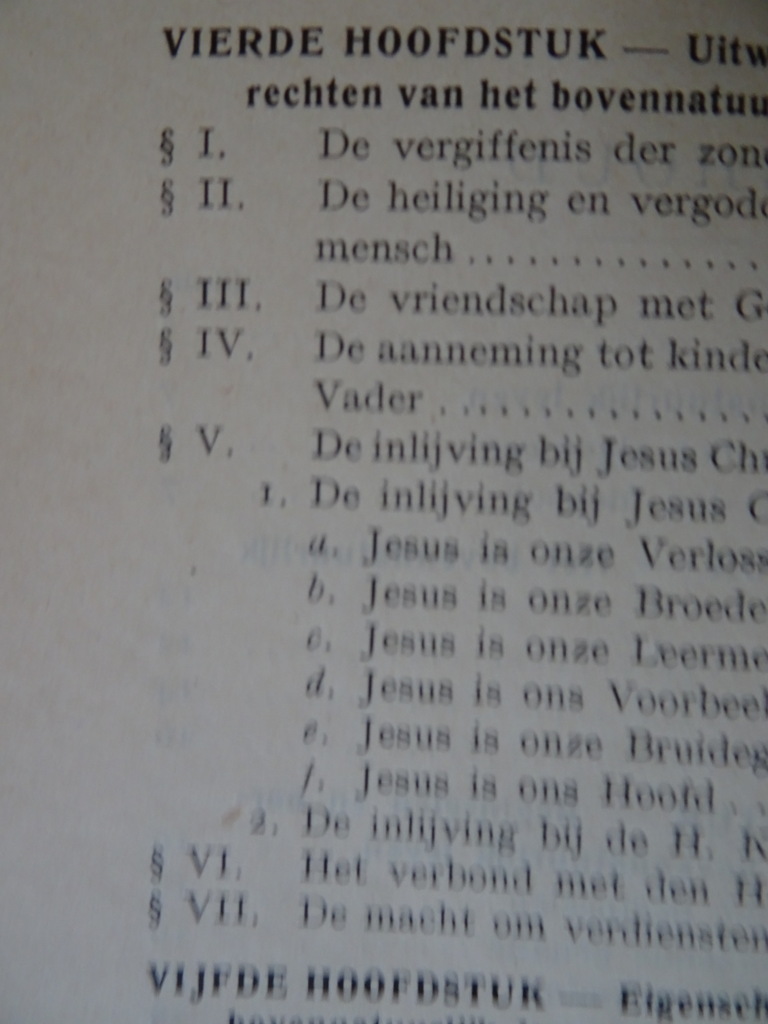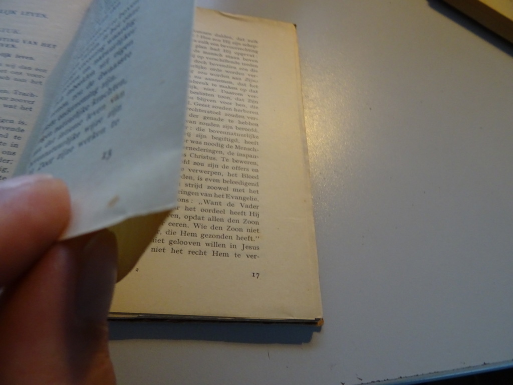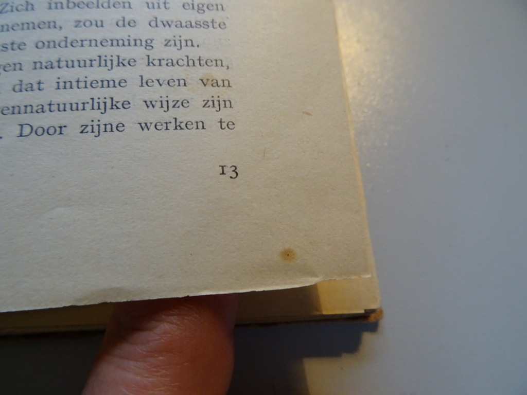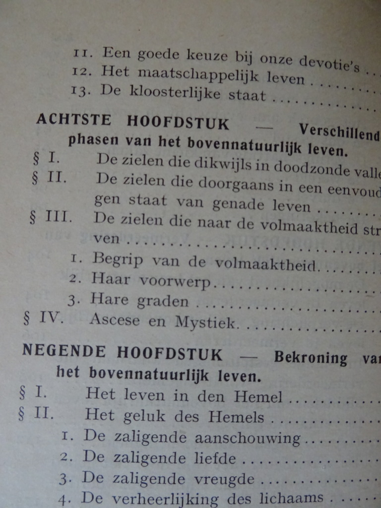 TH. de Haan Handleiding der Ascetiek naar het Fransch van den H.E. Kanunnik Baudhuin vertaald en bewerkt door TH. de Haan, Pr., eerste druk uit 1926. 174 Pagina’s. Zeldzaam boekje. Afkomstig uit de collectie van een pastoor op leeftijd. In een prachtige gebruikte staat, met wat kleine vouwtjes maar ongelezen. De kaft begint wat los te gaan door de ouderdom. De meeste bladzijdes zijn nog aan elkaar bevestigd aan de bovenkant. Bij pagina 13 en 15 is dit aan de rechterkant. Bij pagina 17 tot en met 168 is het aan de bovenkant. Ze dienen voorzichtig opengesneden te worden met een briefopener of mes.