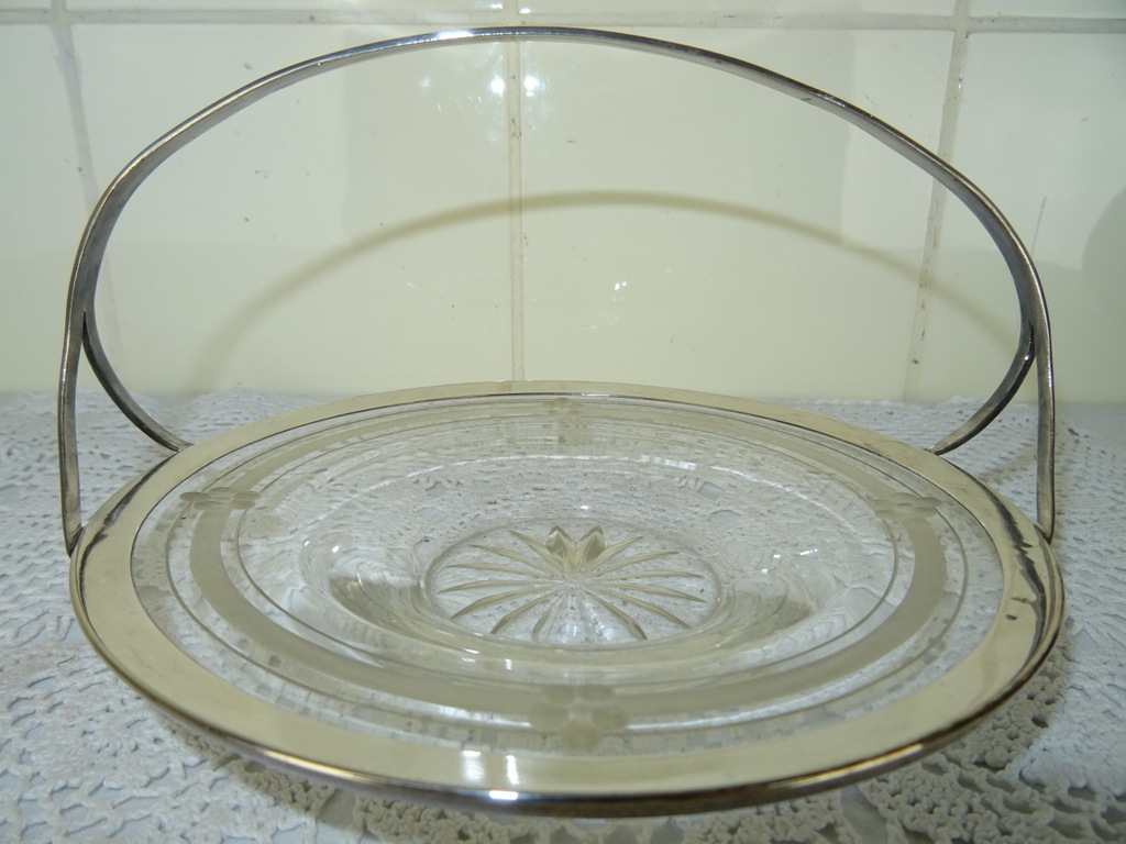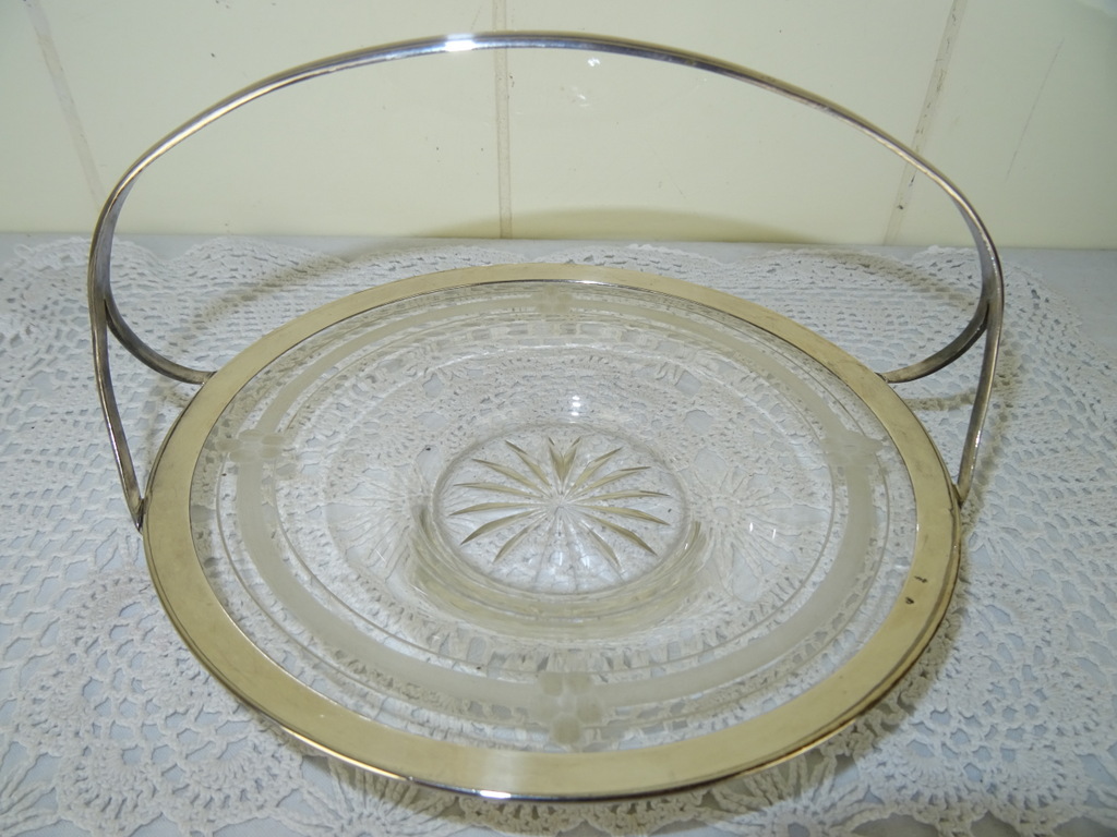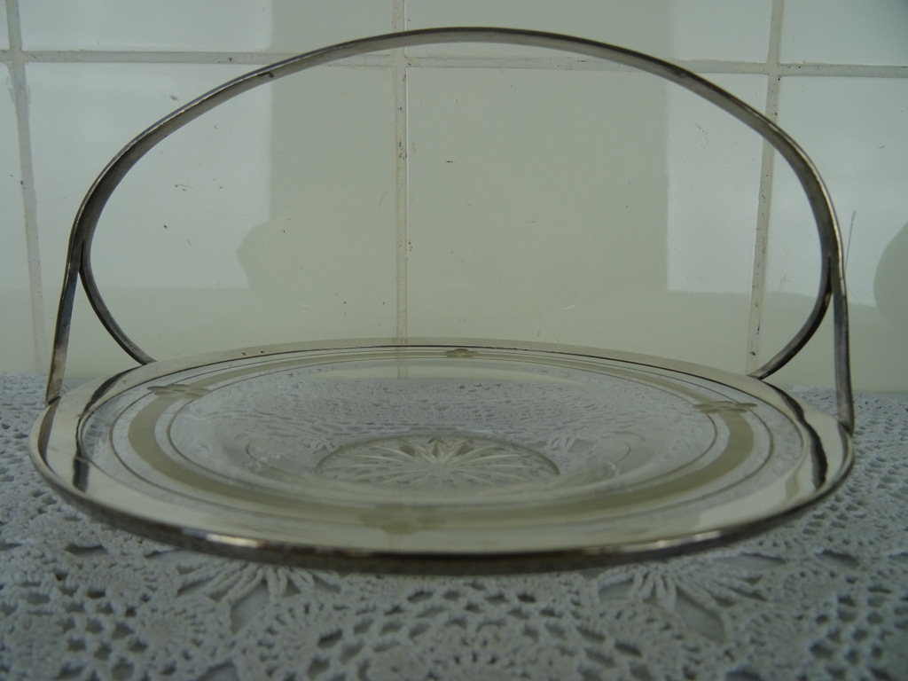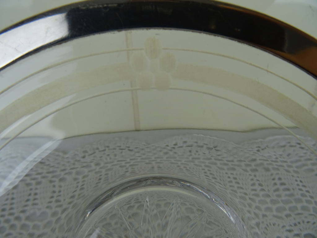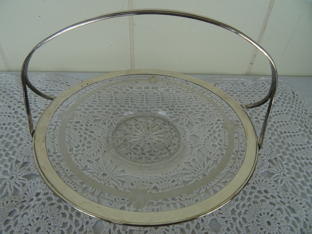 Fraai zilveren bonbonschaaltje vervaardigd rond 1950. Het fraaie schaaltje heeft een bodem van gedecoreerd glas. Het is verrijkt met een elegant zilveren handvat en ook de rand is van zilver. Het heeft gediend als schaaltje voor bonbons of snuisterijen. Het object is in een prachtige gebruikte staat, slechts licht bekrast; zie foto’s.