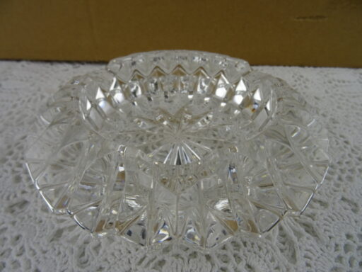 Antieke glazen asbak vervaardigd rond 1950. De robuuste en stijlvolle asbak is in goede staat, puntgaaf. De maker en herkomst zijn onbekend.