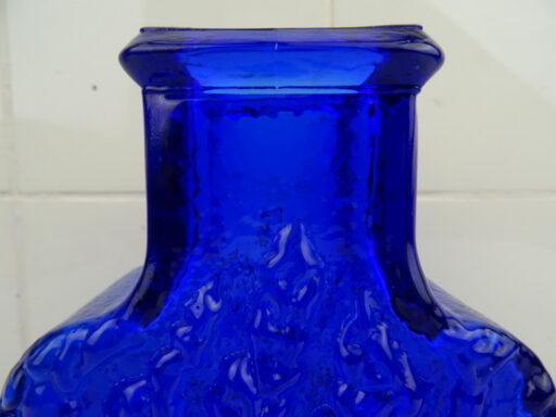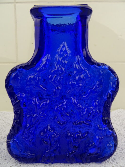 Antieke glazen vaas met een prachtige fel blauwe kleur. De fraaie robuuste vaas werd vervaardigd rond 1950 en is nog in goede staat, puntgaaf. De maker en herkomst zijn onbekend.