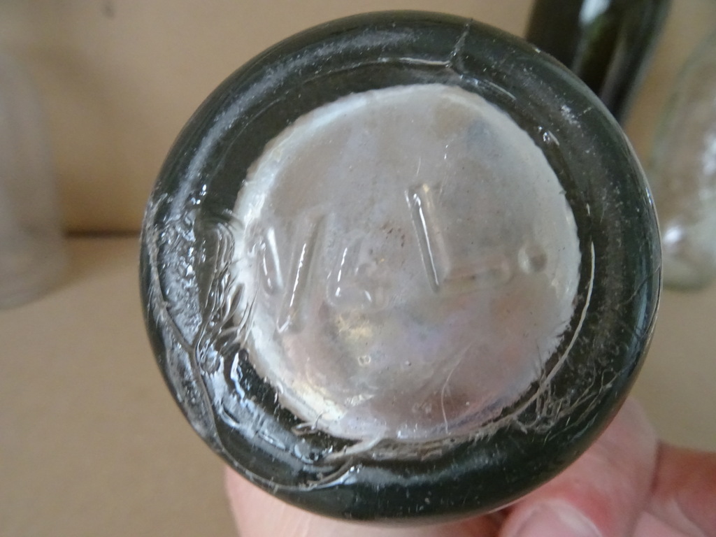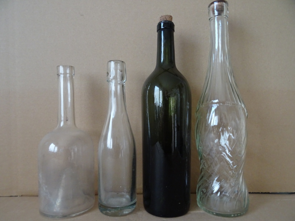 Collectie antieke en vintage flessen vervaardigd in de periode 1900-1970 (schatting). Alle flessen zijn in goede gebruikte staat, puntgaaf. 1) Antieke wijnfles met hoge ziel 23cm, mondgeblazen, circa 1900-1930. 2) Zwaar flesje 23,5 cm voor gazeuse of iets dergelijks, circa 1950. 3) Antieke zware wijnfles met hoge ziel 30 cm, mondgeblazen, circa 1900-1920. 4) Frans of Belgische fles voor gazeuse of cola of iets dergelijks, 33 cm. Indien gewenst ook los te koop indien u even contact opneemt. 19 euro per stuk, het kleine flesje 9 euro. Afmetingen fles 1; circa 8,5 bij 8,5 bij 23 cm. Fles 4; circa 8 bij 8 bij 33,2 cm.