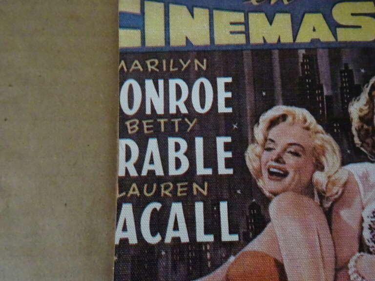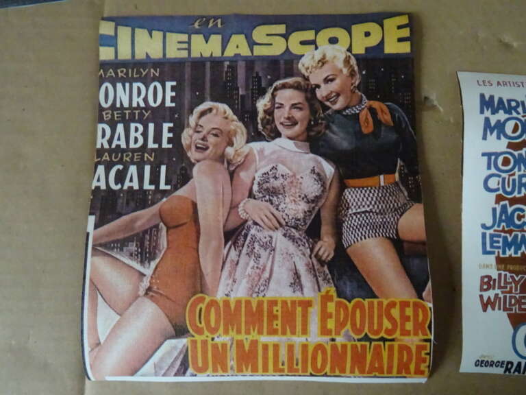 Collectie Franse Marilyn Monroe filmposters vervaardigd in de jaren vijftig. Gedrukt op papier dat met linnen of iets dergelijks verstevigd is. Een zeer zeldzame collectie van 8 filmposters (3 dubbele) in goede gebruikte staat, u vindt ze alleen bij ons! Alle posters zijn ooit groter geweest, één poster heeft een minuscuul scheurtje, zie foto’s. Afmetingen; 1) Circa 19 bij 16 cm. 2) Circa 24,5 bij 16,5 cm. 3) Circa 32,5 bij 14 cm. 4) Circa 19 bij 22 cm. 5) Circa 24,5 bij 17,5 cm. Drie exemplaren zijn dubbel. Ze niet geheel identiek uitgeknipt, zie foto’s. Ik vond deze posters opgerold en ingepakt op een zolder. Toen ik de foto’s maakte krulden de posters nog wat. Doordat ik er enkele dagen een stapel boeken op legde is dit nu al grotendeels verholpen. Dit is te zien op foto 1 en op de laatste 4 foto’s. Indien gewenst los te koop voor 29 euro per stuk. Leuk om bijvoorbeeld in te lijsten. Bekijk ook de andere Marilyn Monroe objecten!