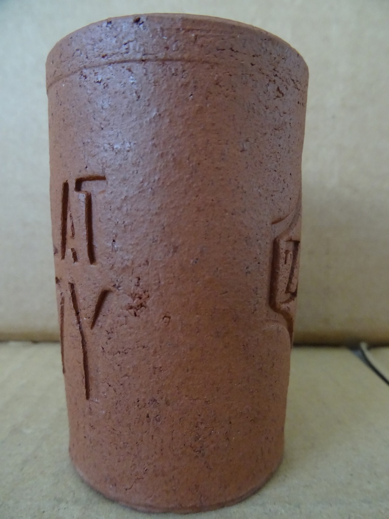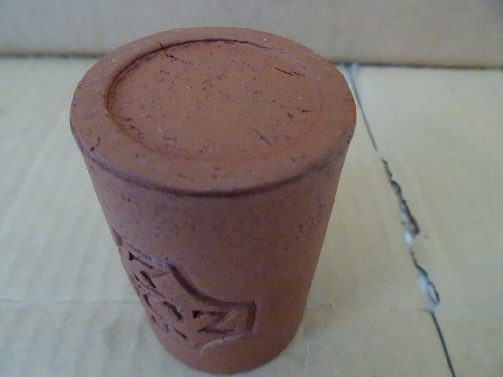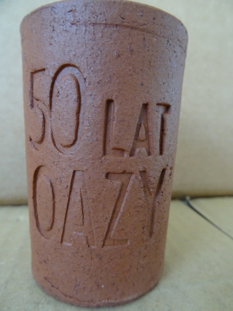 Griekse aardewerk wierookbrander vervaardigd rond 1970 of later. Vermoedelijk een wierookpotje. Puntgaaf. Met opdruk; 50 lat oazy, aan de andere zijde Griekse letters.