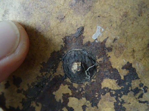 Grote Afrikaanse kalebas 38cm uit 1950 of wat later. Deze kalebas is een prachtige gebruikte, wat verweerde staat. Hij is nog prima te gebruiken als instrument, klinkt nog goed. De kalebas kan niet worden neergezet, zie foto’s.