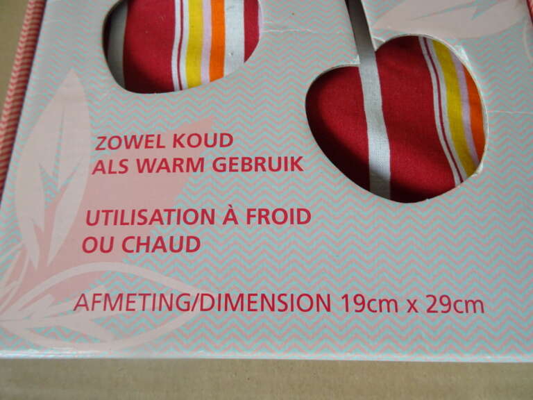 Kersenpit kussen 19x29cm nieuw in de verpakking vervaardigd rond 1980 of later. Het kussen lijkt nooit gebruikt te zijn. Om te warmen en om te koelen.
