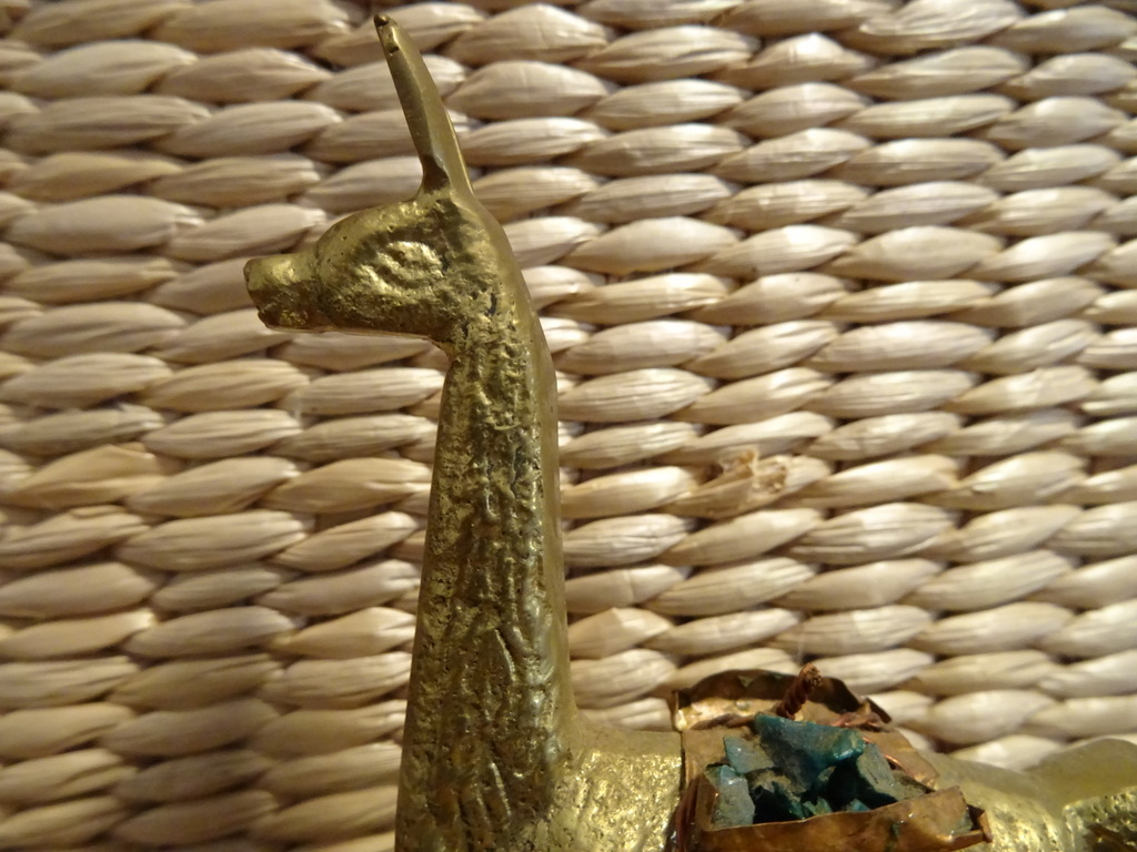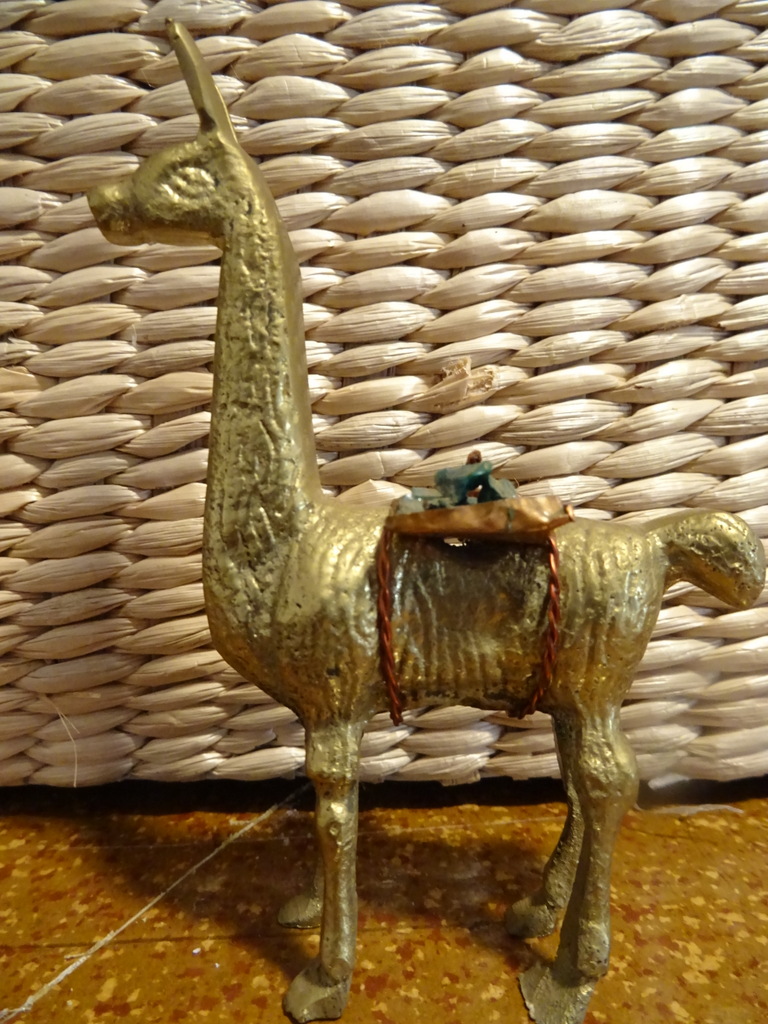 Koperen beeldje lama Peru 11cm vintage vervaardigd rond 1960 of later. Het grappige beeldje is in een schitterende gebruikte staat. De lama is de helft van zijn vracht verloren maar dat is niet storend, zie foto’s.