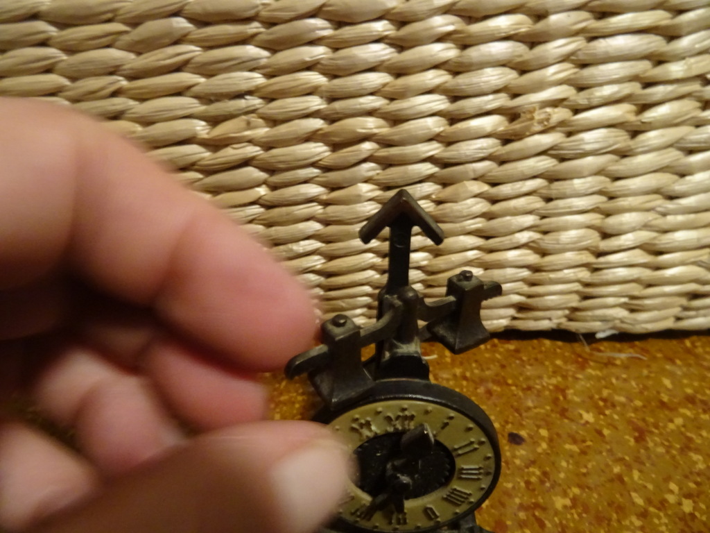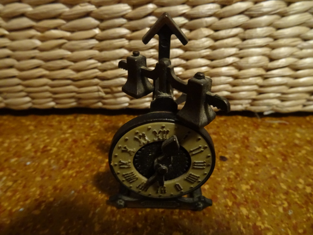 Koperen puntenslijper klok 7cm vintage