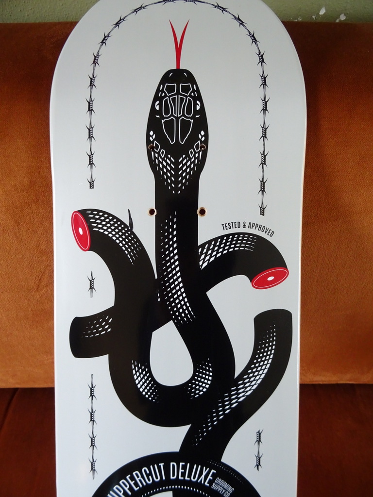 Collectie skateboard decks Uppercut Deluxe vervaardigd vanaf 2008 en later. Alle drie in een prachtige gebruikte staat, zie foto’s. Ze hingen aan een wand, indien gewenst zijn er nog vier stukjes hout waarmee ze aan de muur bevestigd waren. Los te koop voor 39 euro per stuk. U kunt aan het eind van uw bestelling vermelden om welk deck (1, 2 of 3) het gaat. Indien gewenst in één koop voor 99 euro. Stuur in dat geval een mailtje, bel even of kies gewoon voor handmatige overboeking en maak het juiste bedrag over.