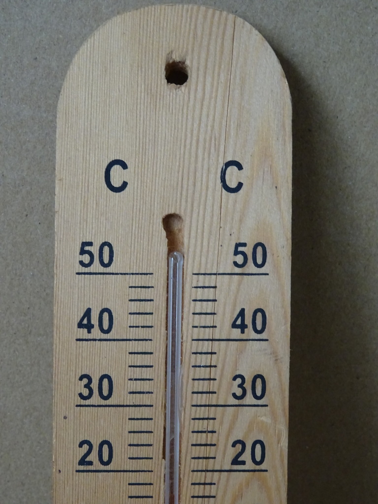 Vintage houten thermometer vervaardigd rond 1960 of wat later. Hij lijkt niet of haast niet gebruikt te zijn, zie foto’s. Werkt nog goed.
