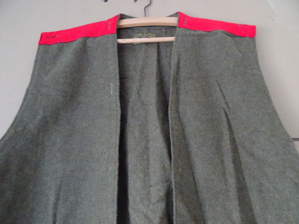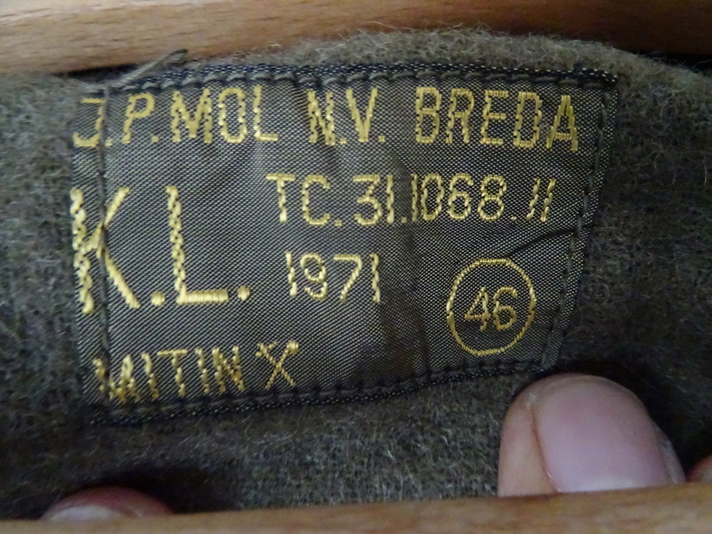 Vintage binnen voering voor legerjas uit 1971. Afkomstig uit de leger plunjezak van een pastoor op leeftijd. Deze was aalmoezenier in zijn diensttijd. Hierdoor zijn een aantal spullen nog haast als nieuw, waaronder deze voering. Deze heeft geen knopen maar alleen knoopsgaten aan beide kanten voor aan de knopen van de binnenkant van een jas. Haast als nieuw. Breedte bovenkant; 44 cm, onderkant; 81 cm. Lengte; 93 cm.