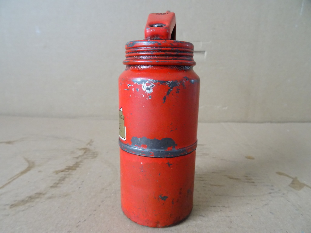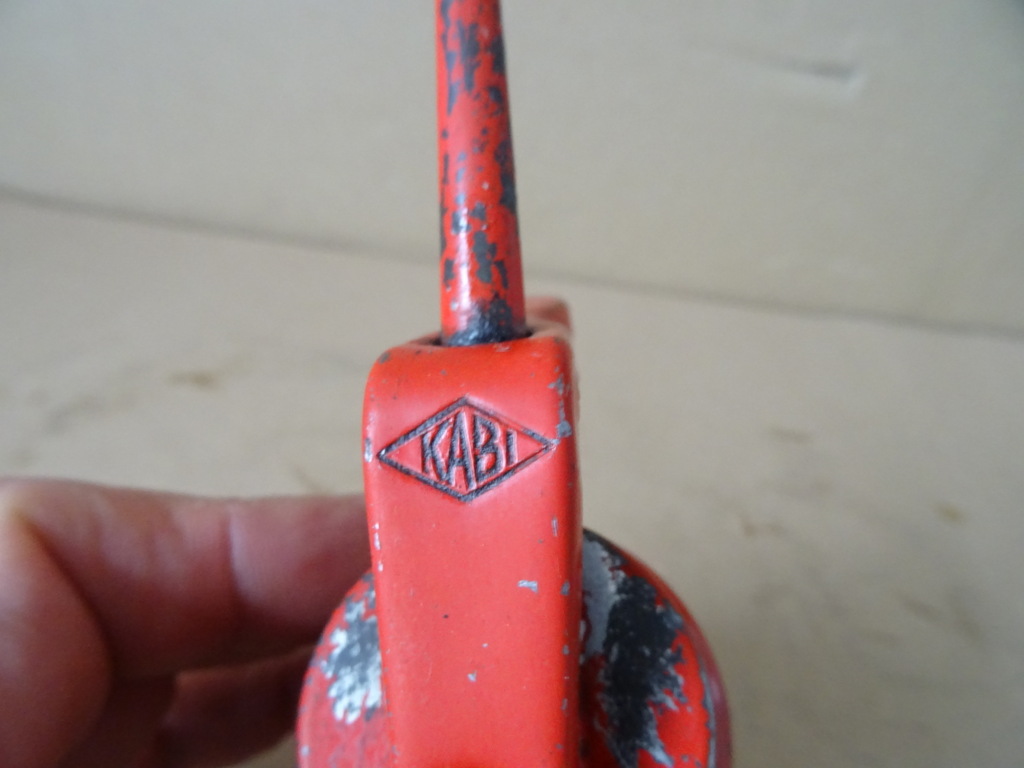Vintage metalen olieflesje Kabi 14cm vervaardigd rond 1950 of later. In een prachtige gebruikte, wat verweerde staat zonder deukjes. Werkt nog perfect. Dit heb ik kunnen testen doordat er nog olie in zat.