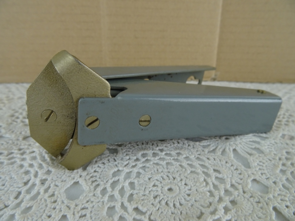 Vintage metalen ponse apparaat vervaardigd rond 1950 of iets later. Verrijk uw papieren met ronde hoeken! Het onverwoestbare apparaat maakt de hoeken van papieren rond, zie foto’s. Stoort u zich ook altijd aan die lelijke hoeken in het papier? Grijp uw kans. Haast als nieuw.
