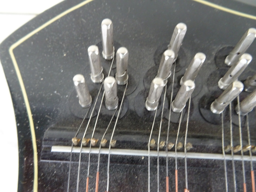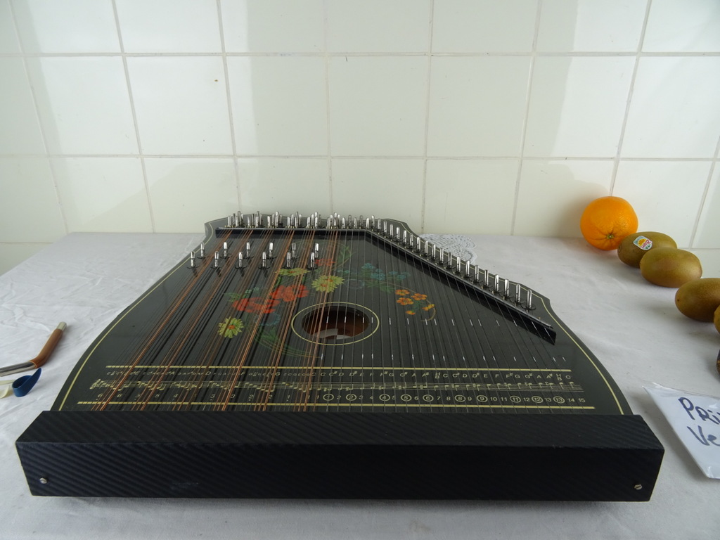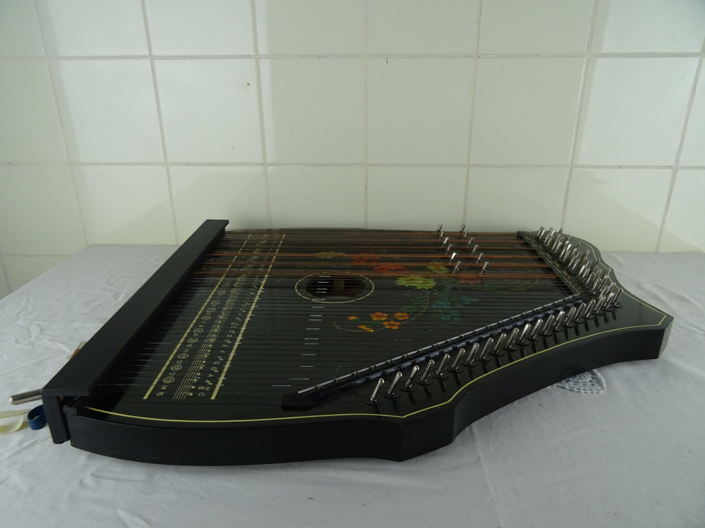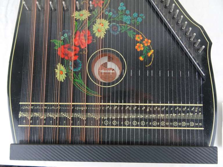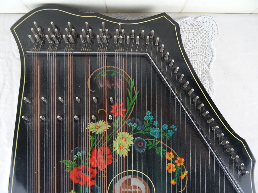 Vintage Musima citer speelklaar vervaardigd In BRD (West Duitsland) rond 1965. Het geluid is geweldig, werkelijk oorstrelend. Echt cool voor een band om de show mee te stelen. Ik wilde het instrument laten stemmen maar tot mijn verbazing bleek dit niet nodig te zijn toen de specialist het controleerde. We konden onze oren niet geloven. Alle snaren klinken nog steeds perfect (gecontroleerd met digitale stemapparatuur). U kunt er dus meteen mee aan de slag. De citer is nog in een zeer goede staat gezien de leeftijd. Zo goed als nieuw, slechts wat stoffig onder de snaren. De fraaie handbeschilderde citer is compleet met een 2 plectrums en het handvat voor de snaren, zie foto’s. Gewicht; 3.9 Kg, ingepakt ruim 5 Kg.