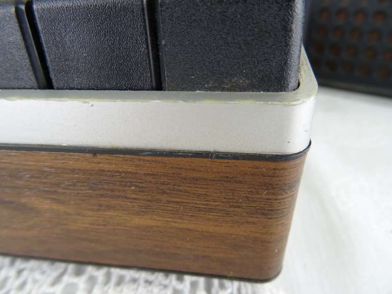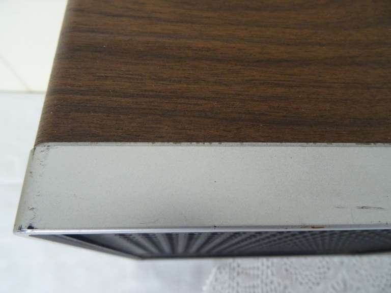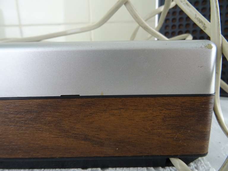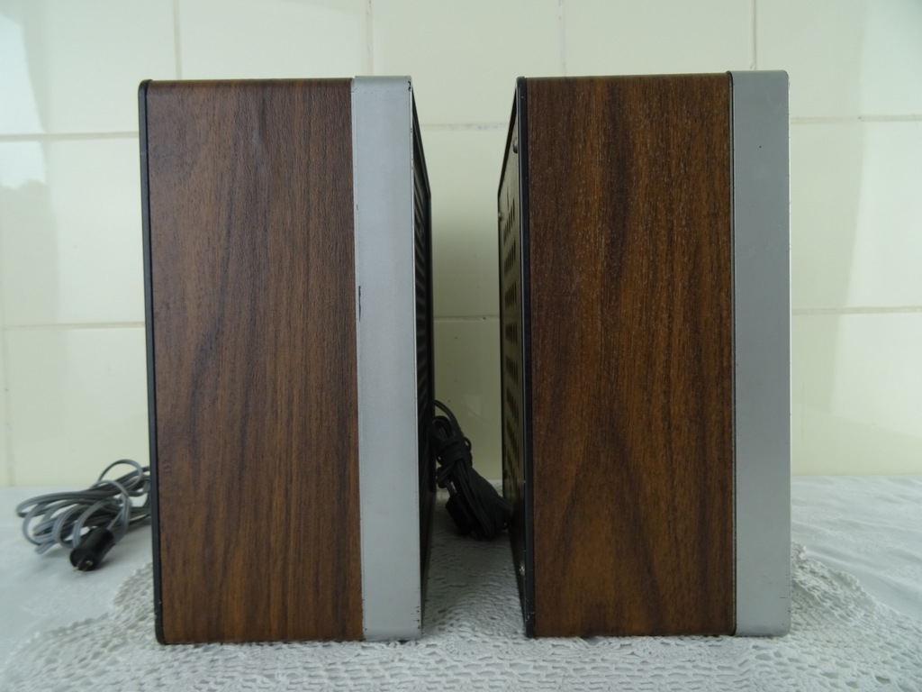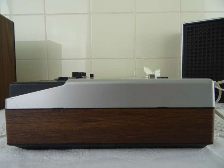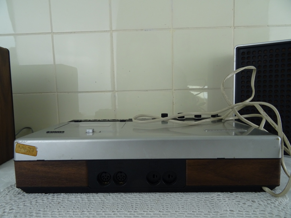 Vintage Philips stereo N2405 cassette recorder met de originele luidsprekers vervaardigd rond 1976. De fraaie zeldzame set werkt nog perfect. Het geheel is in goede gebruikte staat. Het fineer bovenop de luidsprekers is wat gaan werken, zie foto’s. Het geluid klinkt echter verrassend goed! De kabels van de luidsprekers zijn mogelijk vervangen. Afmetingen cassette recorder; 34 bij 21 bij 7.5 cm. Afmetingen luidsprekers; 22.5 bij 10.5 bij 22.5 cm.