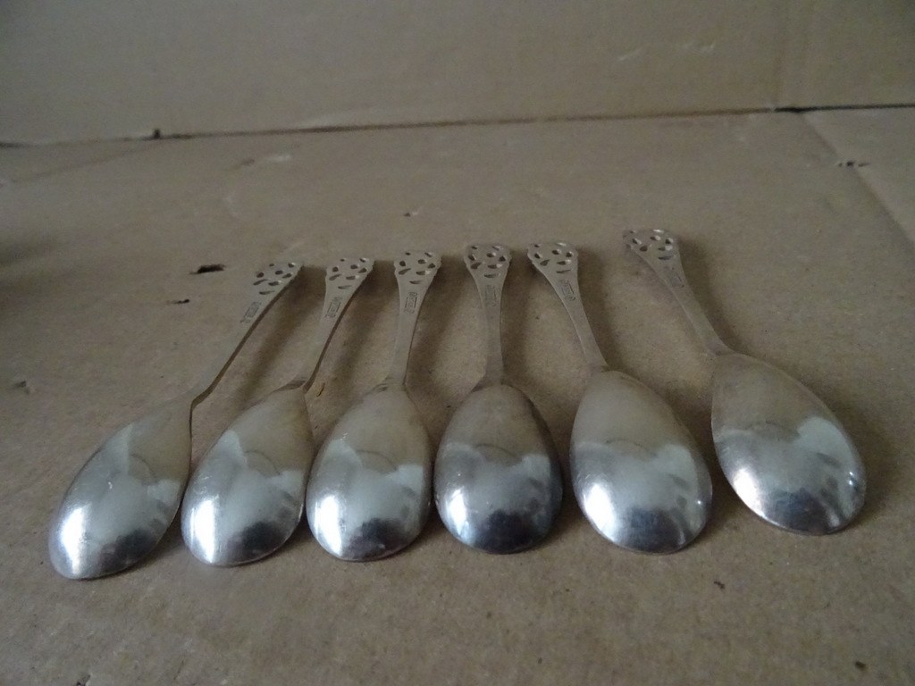 Vintage set verzilverde lepeltjes Solal vervaardigd rond 1950 of wat later. Roer uw koffie of thee in stijl met deze prachtige lepeltjes. Gemerkt; A Sola 90.