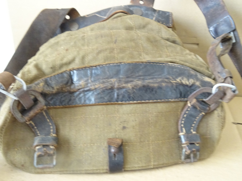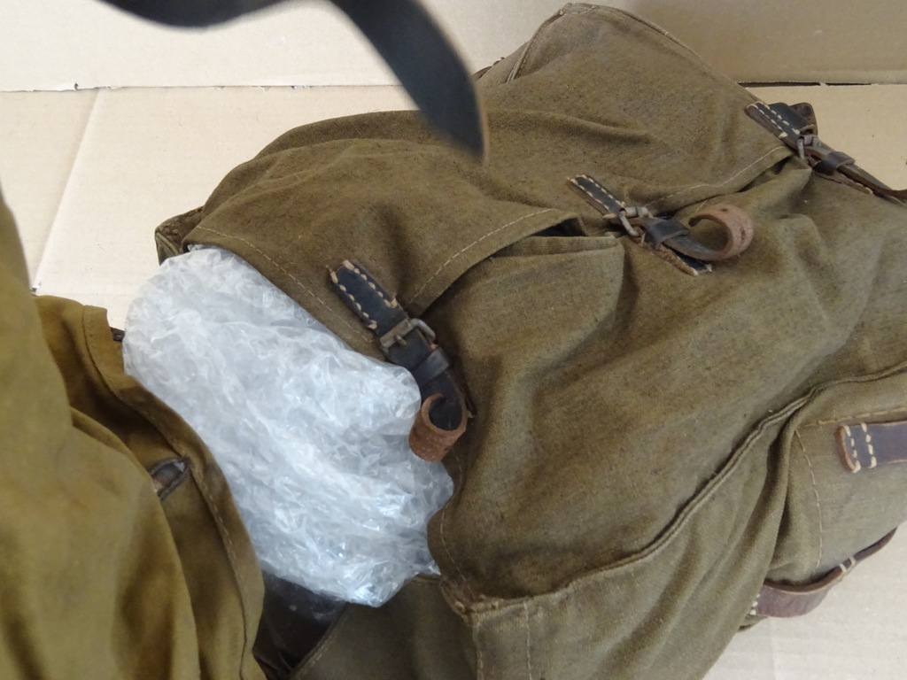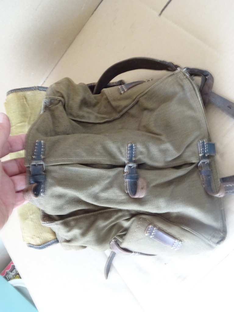 Wehrmacht Heer rugzak Affe 1943 met koeienhuid op de klep (tornister 39) vervaardigd in 1943 in Duitsland. De Heer was de naam van de Duitse landmacht binnen de Wehrmacht. Voor een rugzak die de oorlog overleefde is hij in een schitterende gebruikte staat, zie foto’s. De koeienhuid was ter bescherming tegen regen. Dit type heeft twee haken aan de achterzijde voor bevestiging aan de Y-riem. Omdat men vond dat de rugzak als een aapje op de rug zat werd hij ‘Affe’ genoemd. De Affe is gemerkt door de maker firma ‘Max Muller’ uit Nurnberg en gedateerd 1943.