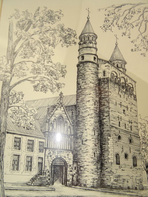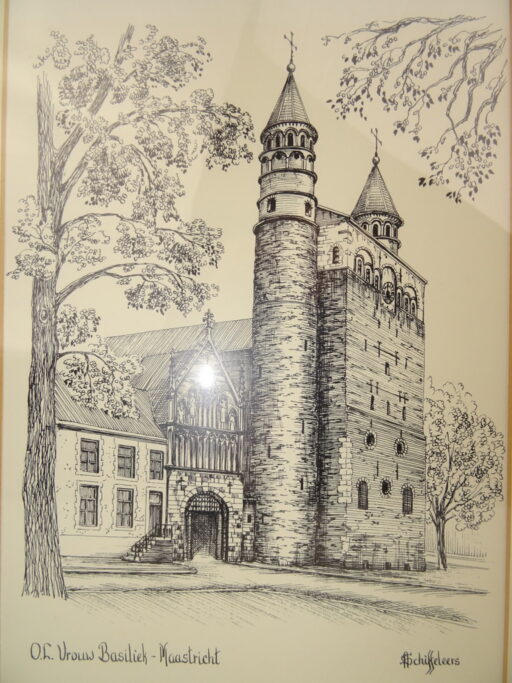 Ingelijste prent of tekening O.L. Vrouw Basiliek Maastricht H Schiffeleers