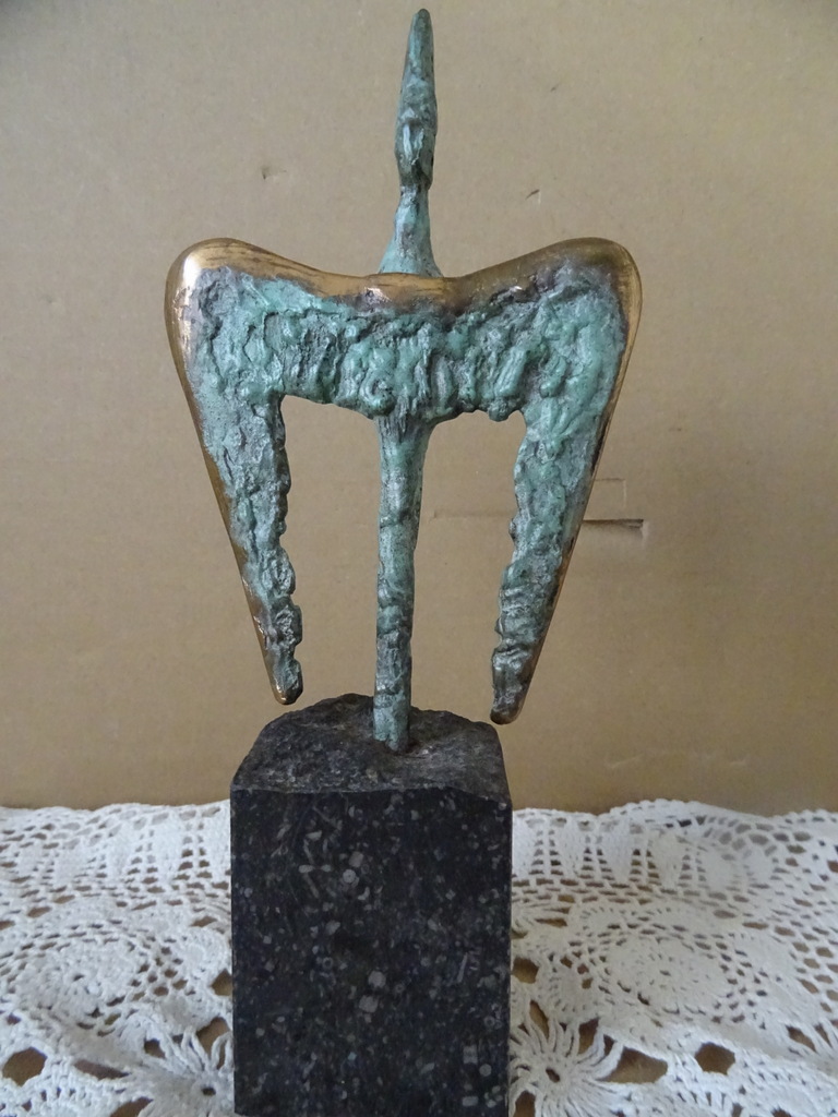 Carina Canton bronzen beeld Opwaartse vlucht 22cm vervaardigd rond 1994. Carina Canton oftewel Carina Canton-Janssens (1946) is een bekende Nederlandse beeldende kunstenaar. Dit fraaie beeld is een unicum. Hoogte inclusief marmeren voet 22 cm.