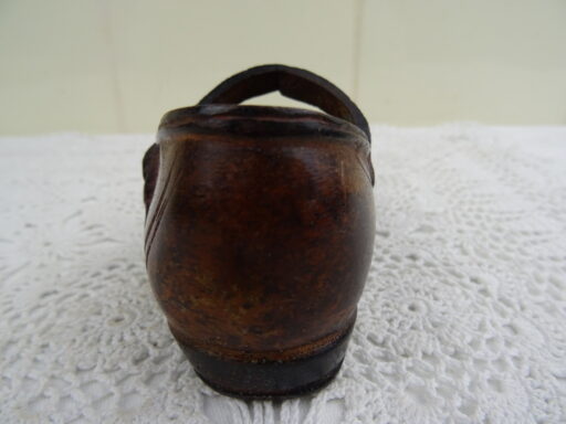 Lieflijke koperen kinderschoen voor een meisje vervaardigd in de negentiende of twintigste eeuw. De maker en herkomst van dit aparte object zijn onbekend. De kinderschoen is nog in goede staat. Het is een leuk object voor in de etalage van een schoenmaker.