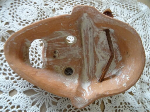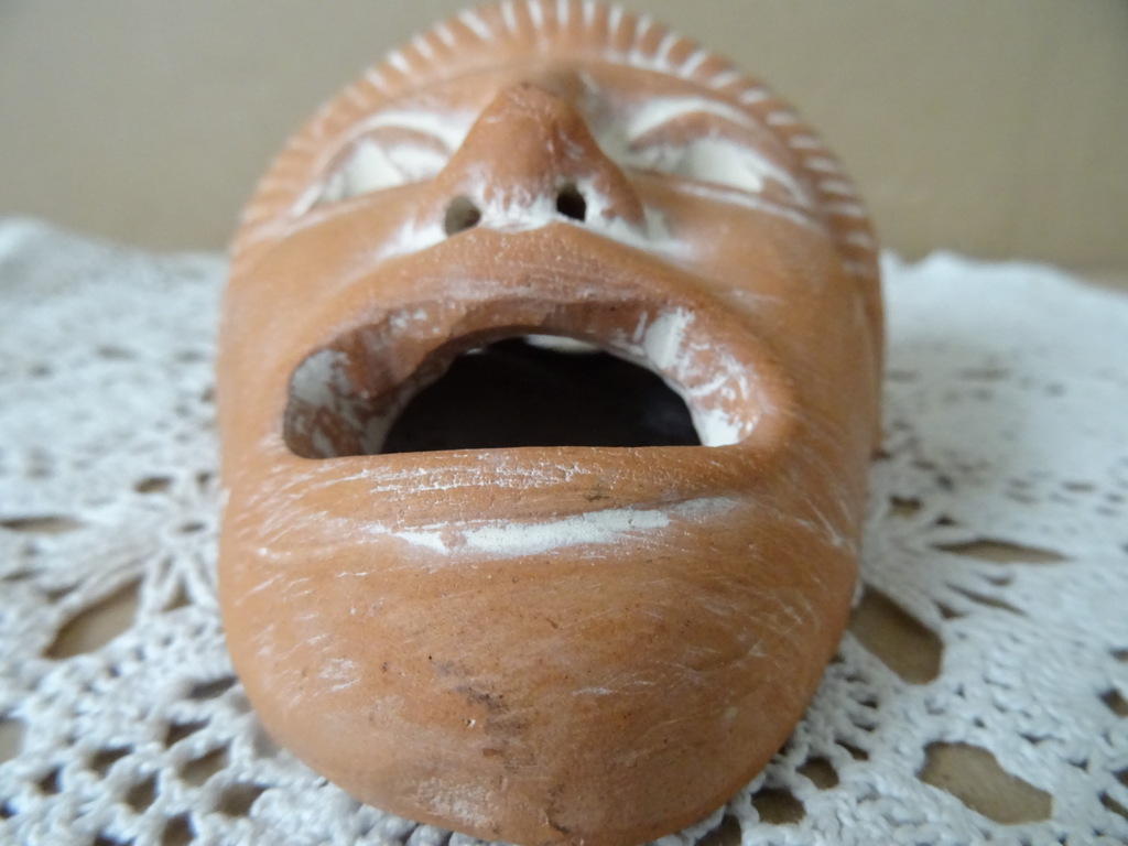 Vintage Grieks aardewerk masker 14cm vervaardigd rond 1970 of later. Het terracotta masker is nog in vrij goede staat, puntgaaf.